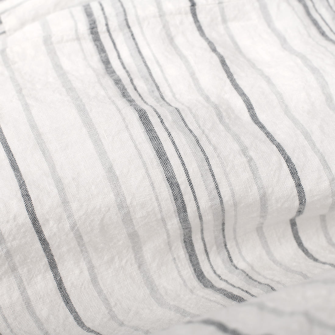 Antklodės užvalkalas „Oksfordas“ su sagomis apačioje pasiūtas iš pieno baltumo (gelsvai balto) lininio audinio su tamsiai pilkais ir melsvai pilkais siaurais dryžiais. Gaminio audinys skalbtas specialiu būdu, todėl minkštas, švelnus, malonus odai. Nebesitrauks skalbiamas ir jo nereikia lyginti – patogu ir praktiška!