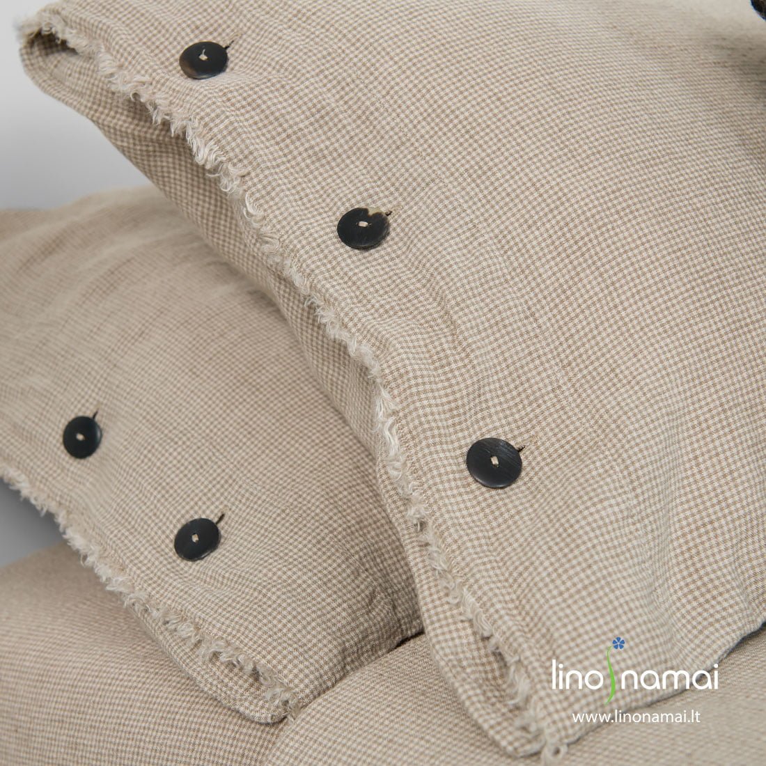 • Lininis pagalvės užvalkalas rusvais langeliais, su sagomis „Marso kanjonai“