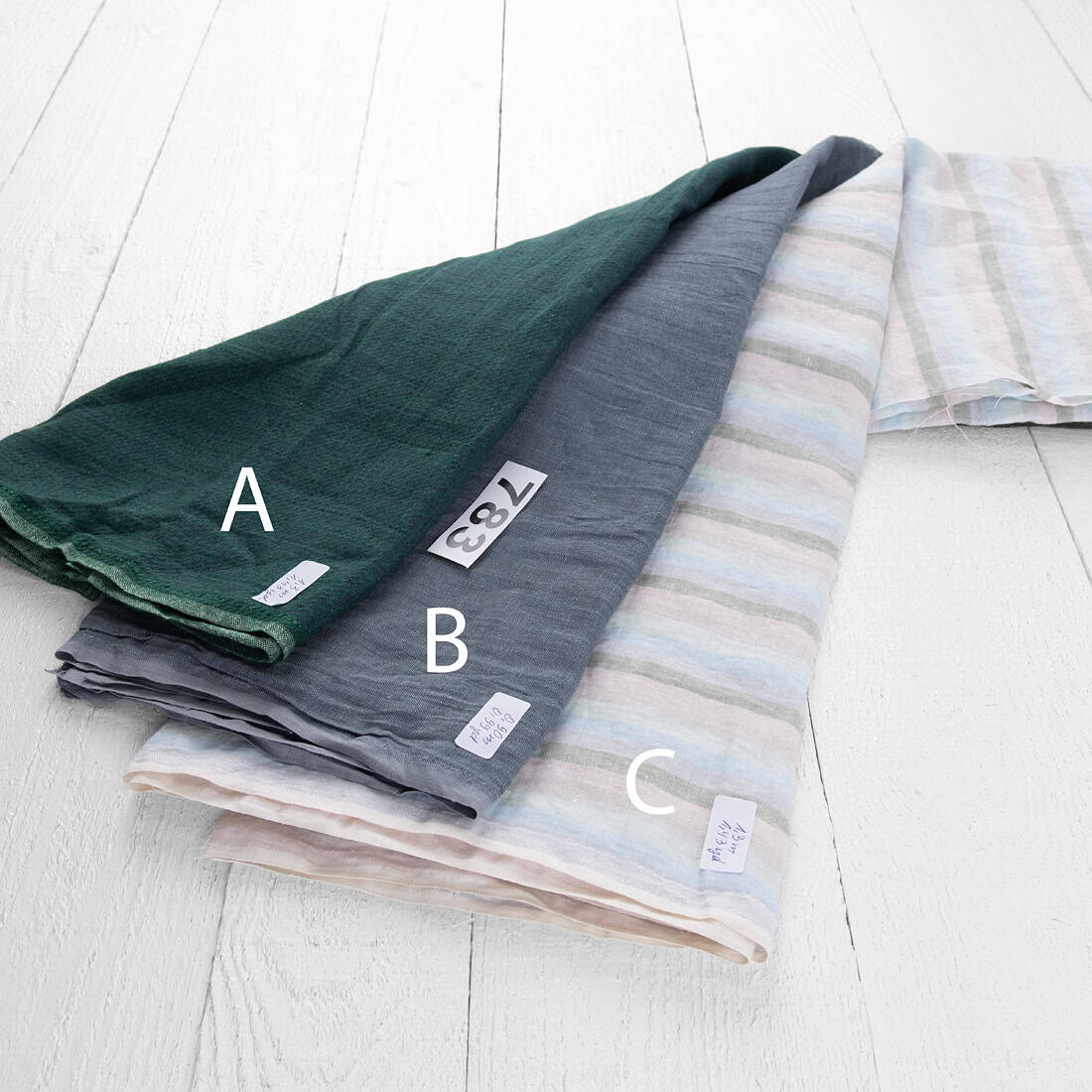 - Rinkinys susideda iš 3 skirtingų audinių gabaliukų