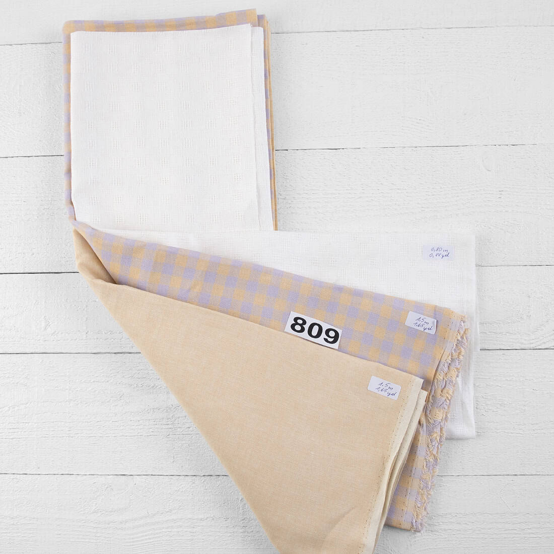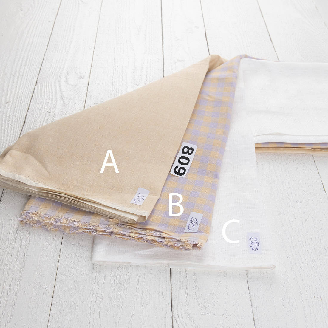 - Rinkinys susideda iš 3 skirtingų audinių gabaliukų