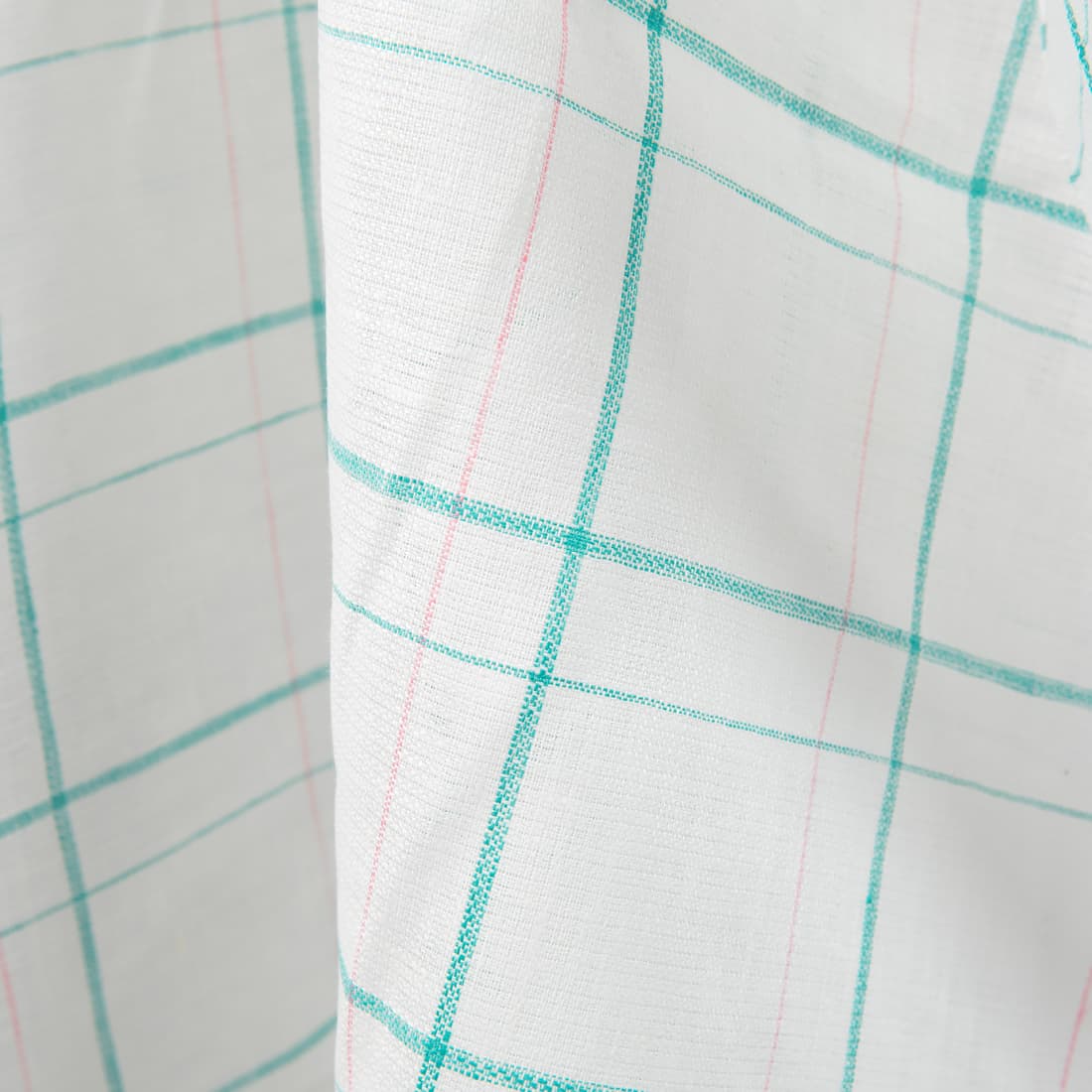 Lengvas baltas su žaliais langeliais ir rausvomis juostelėmis audinys. Puikiai tinkantis virtuvės ir stalo gaminiams.