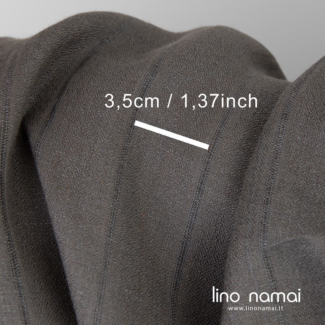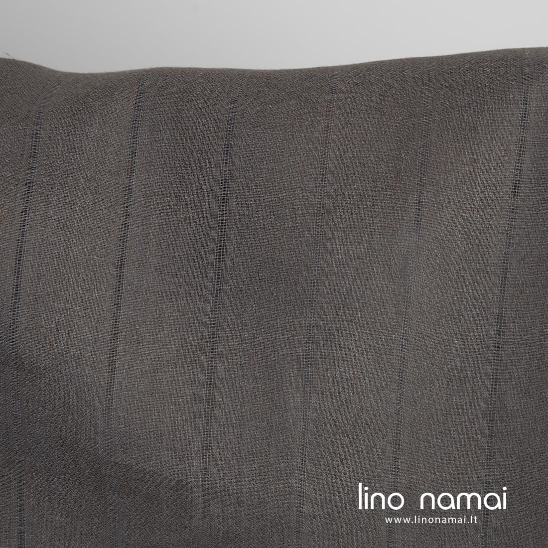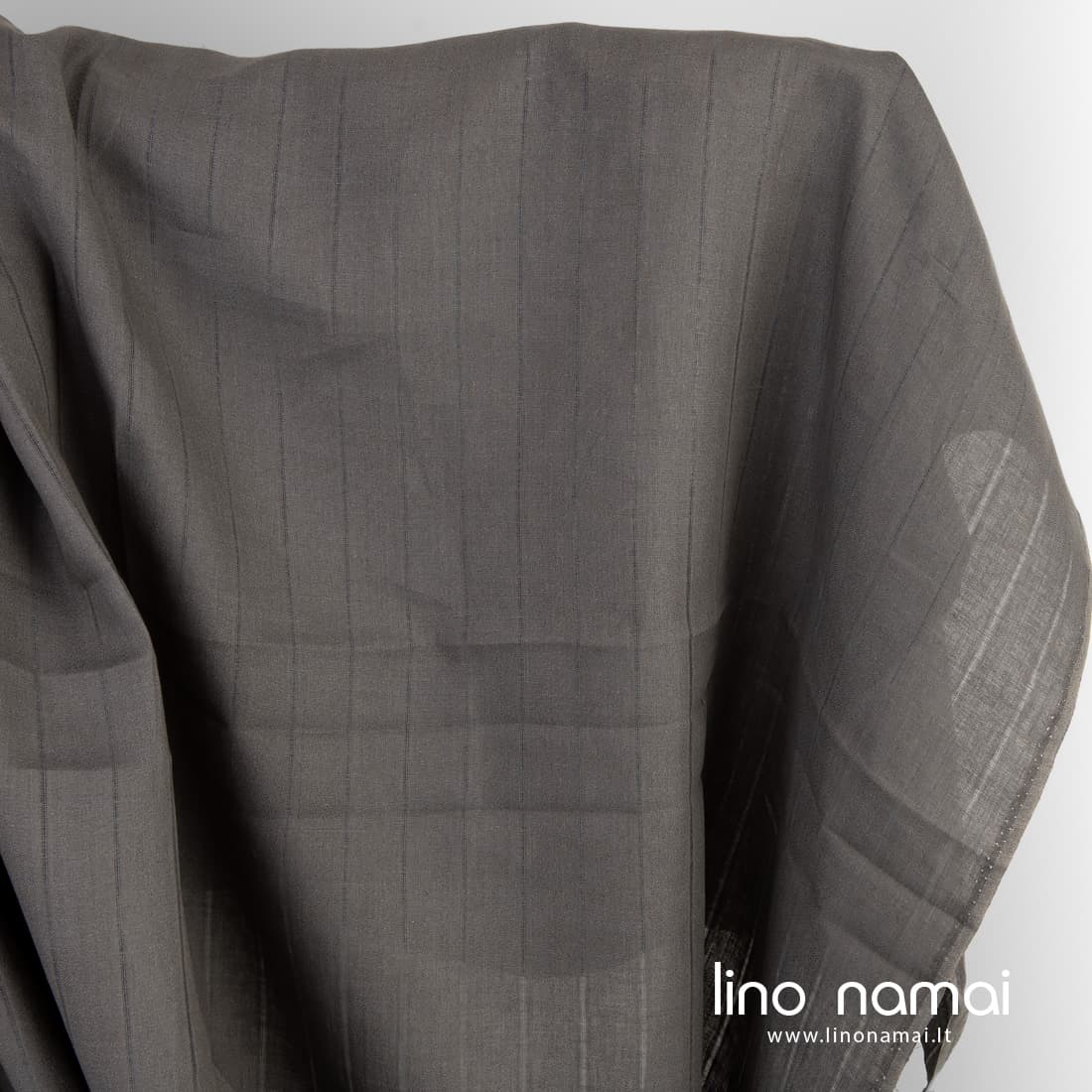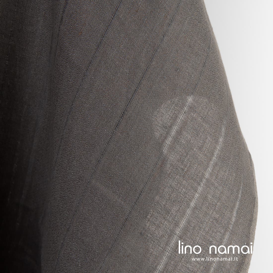 • Pilkai rudas lininis audinys su retesnio pynimo vertikaliomis juostelėmis