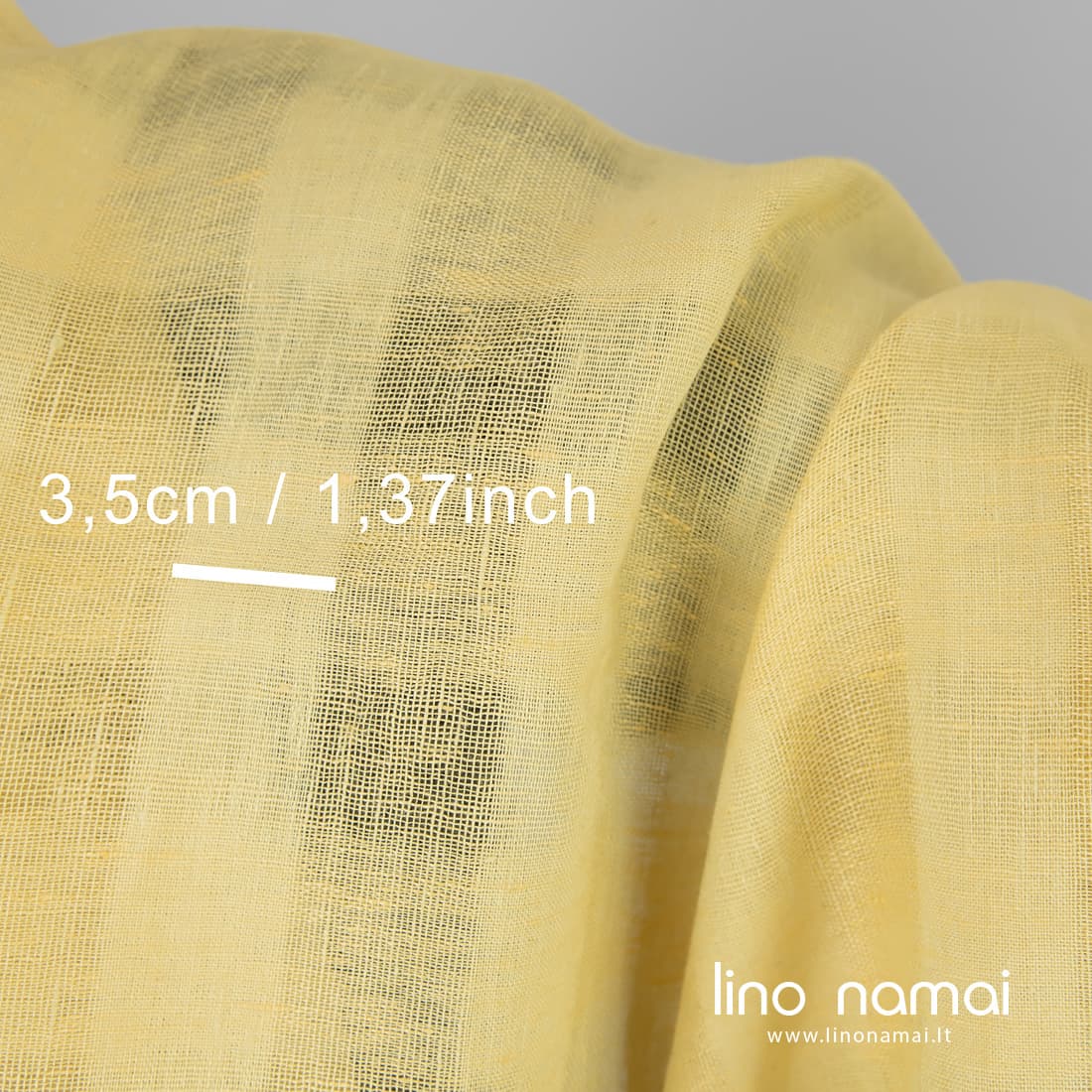 • Geltonas lininis audinys retais ir tankiais langeliais