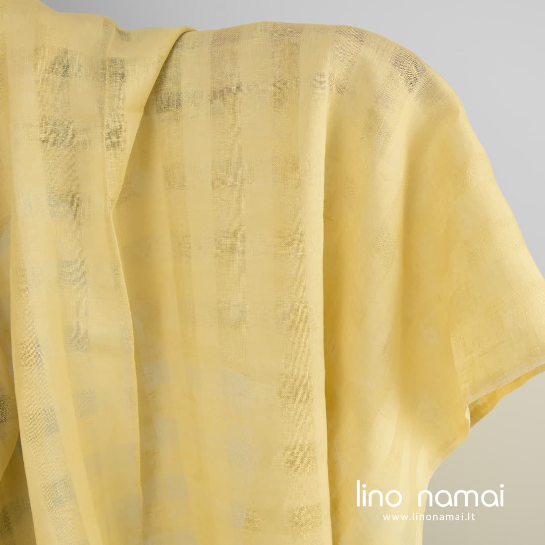 • Lininis audinys permatomais langeliais išaustas iš dviejų atspalvių geltonų verpalų