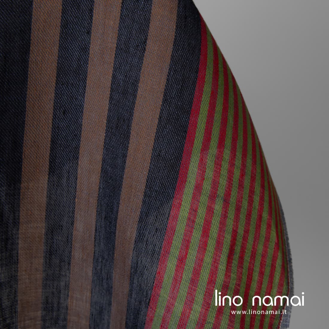 • Lininis audinys įvairių spalvų vertikaliais dryžiais