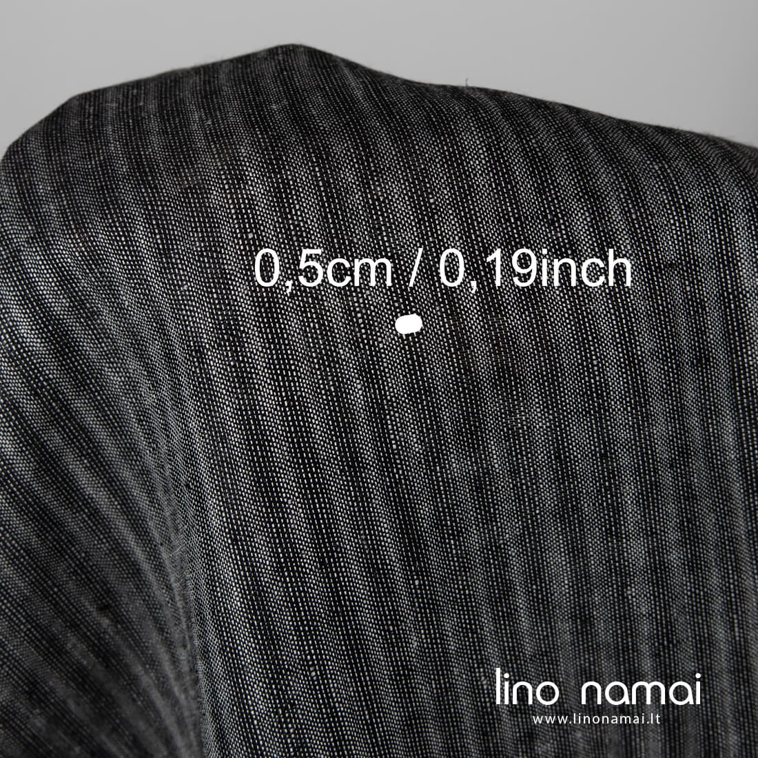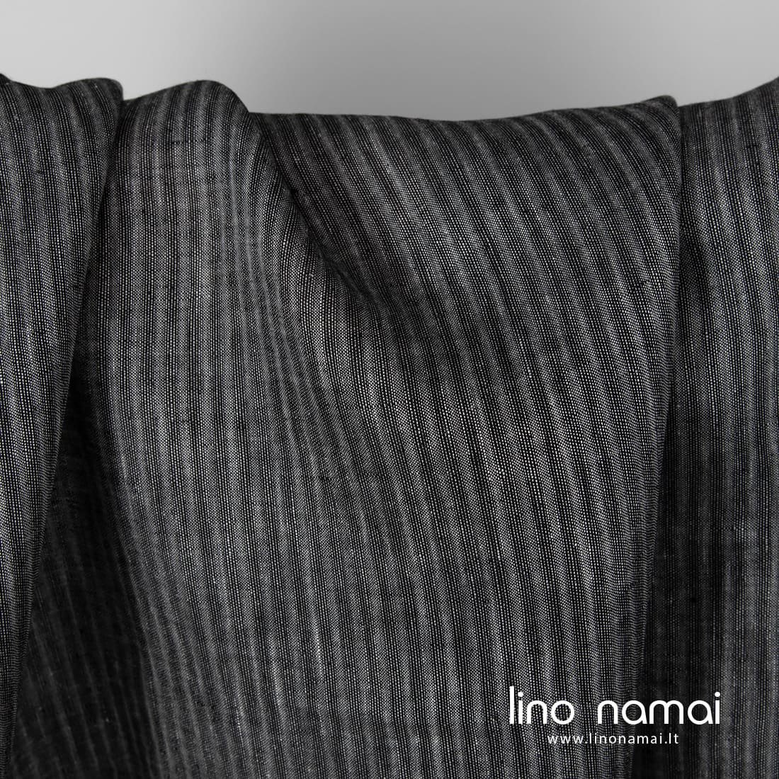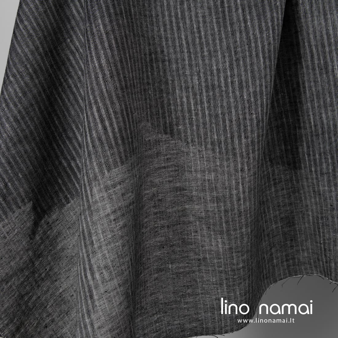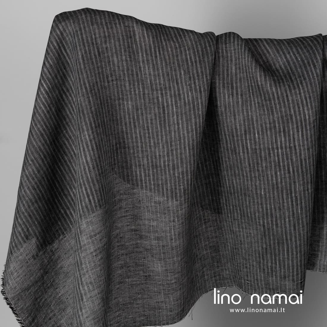 Lininis audinys vertikaliais juodais dryžiais išaustas derinant juodus verpalus su baltais. Šis linas lengvas, šiek tiek permatomas.