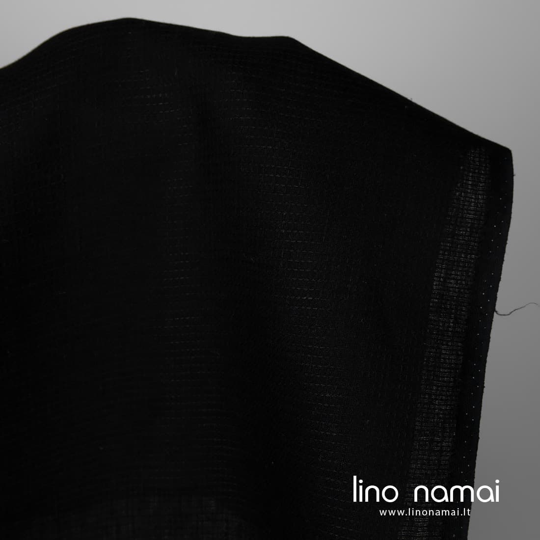 • Juodas lino audinys „vafliniais“ langeliais