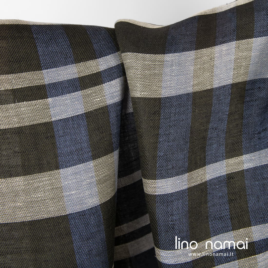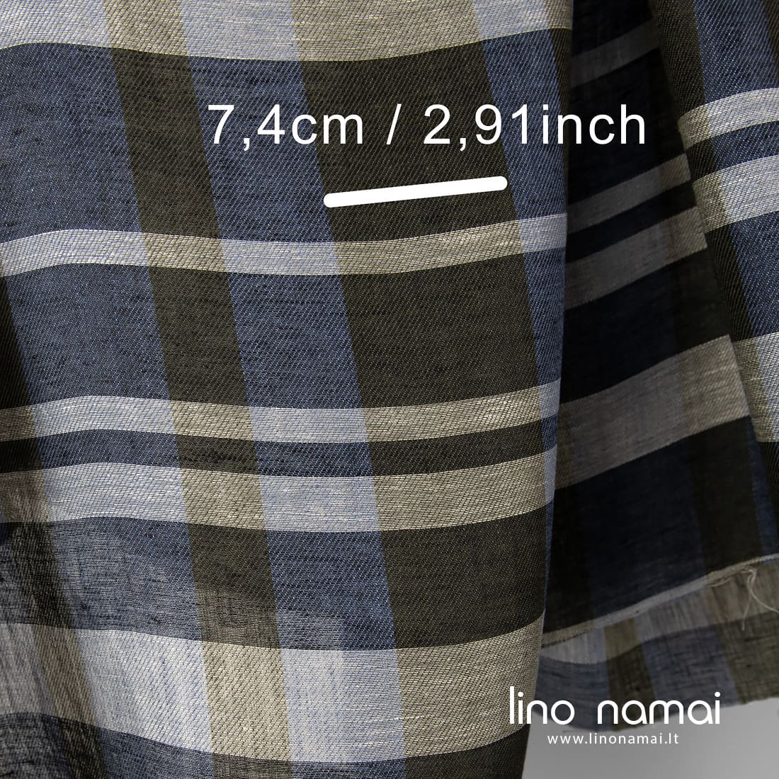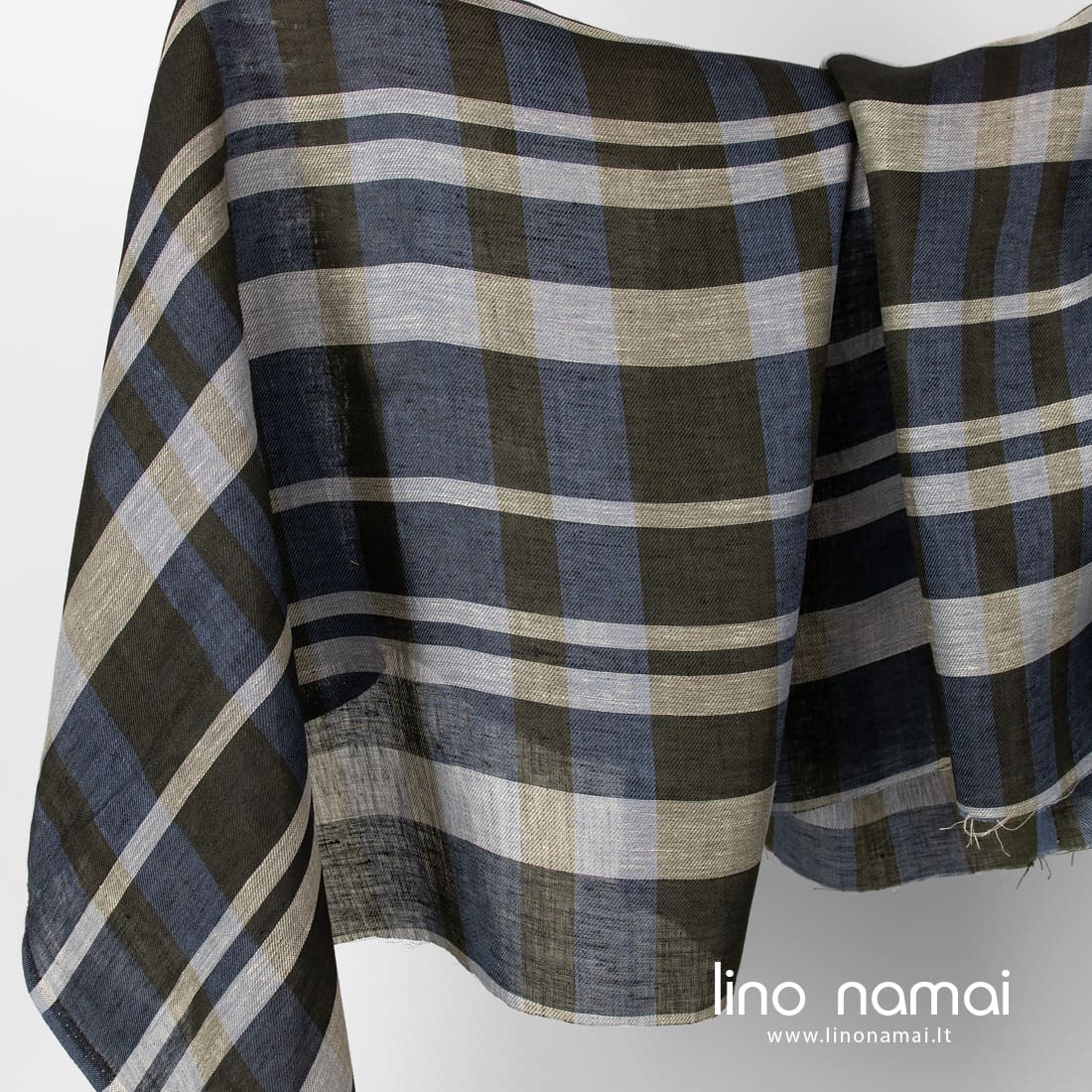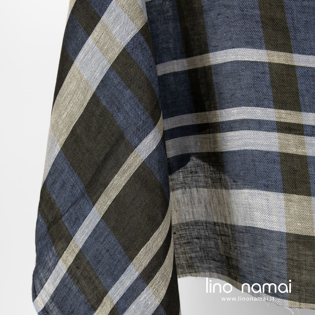 Lininis audinys mėlynai-žaliai languotas, išaustas iš mėlynai pilkų, rudai žalių (samanų spalvos), juodų ir natūralios spalvos (nedažytų, rusvai pilkų) verpalų. Lengvas, tvirtas, iš dalies permatomas.