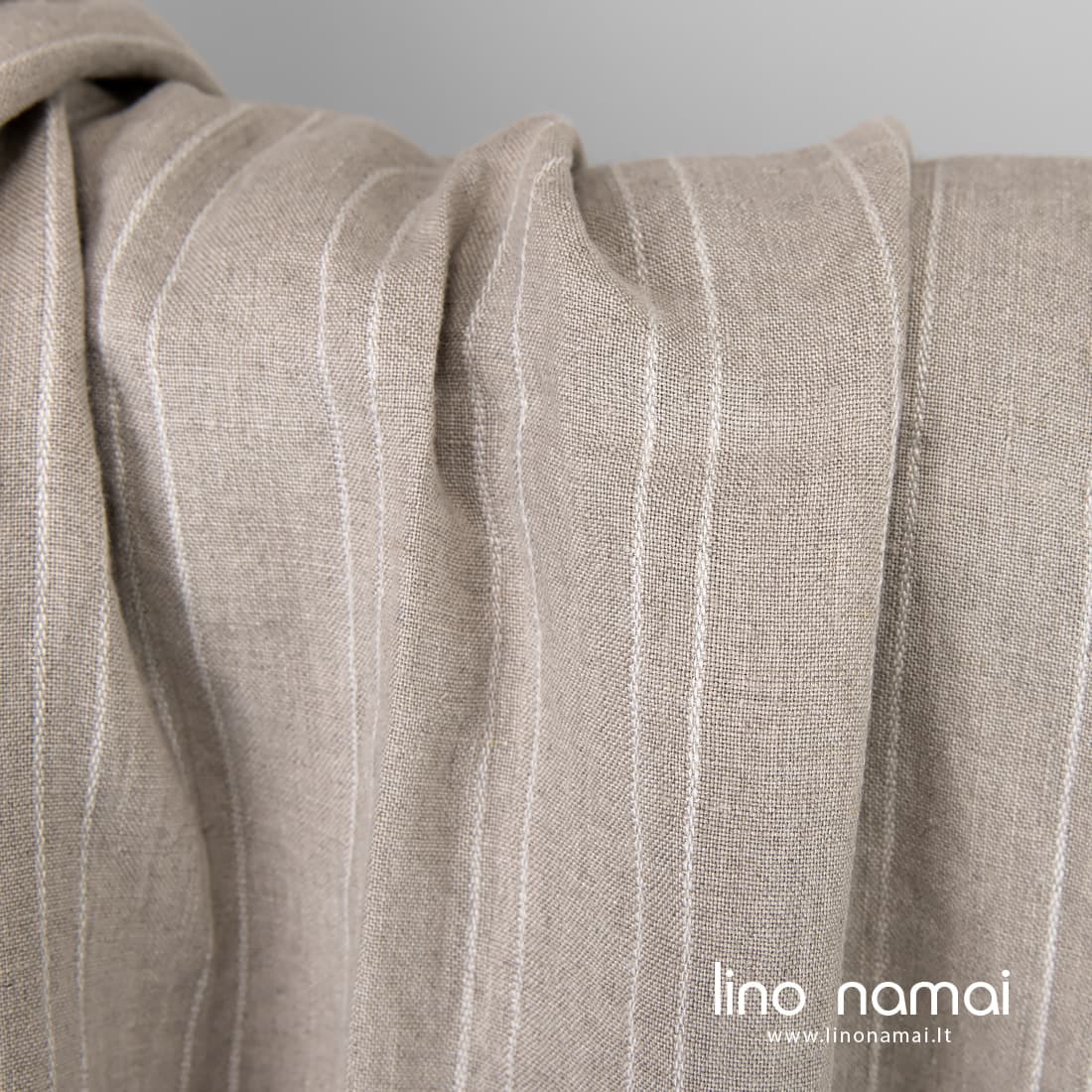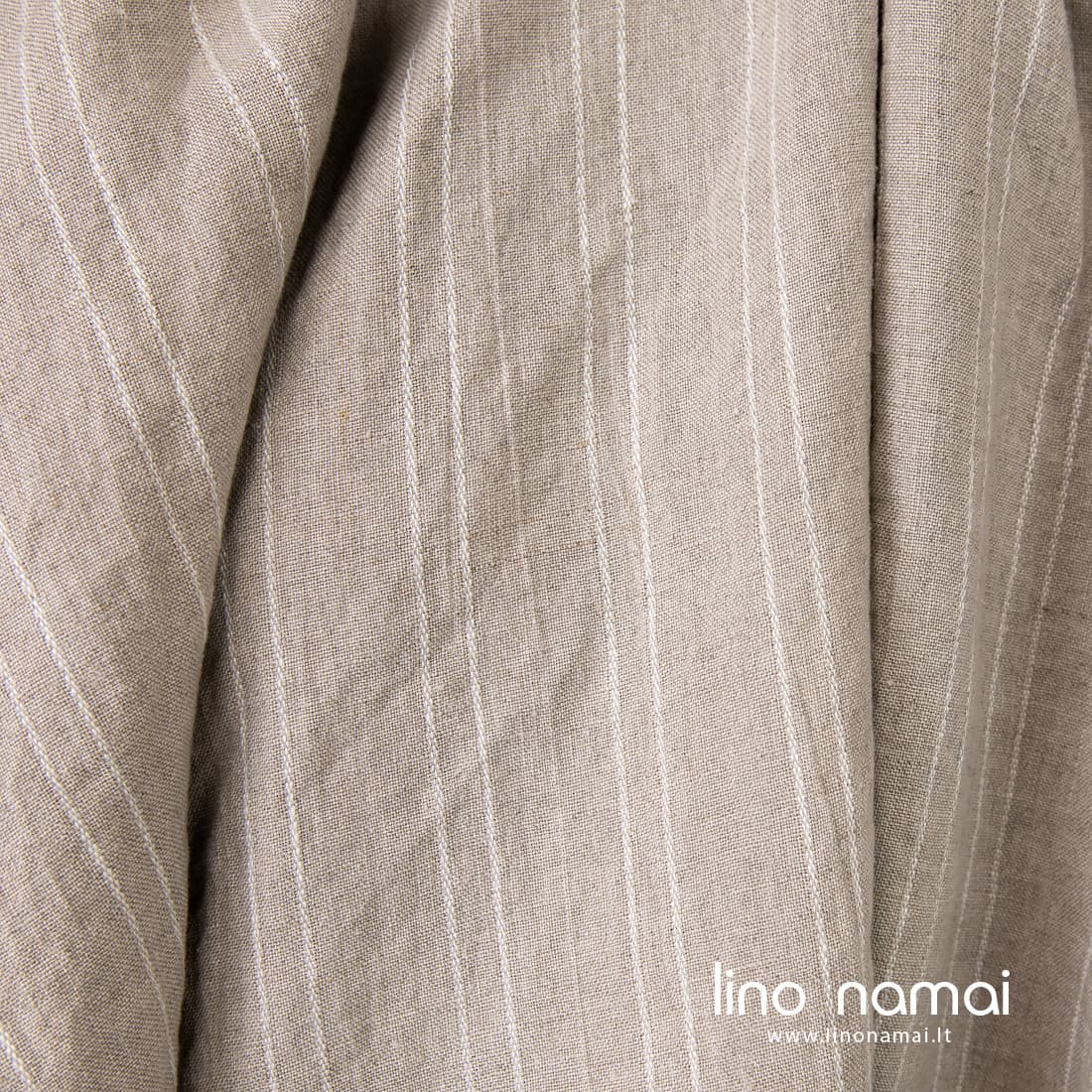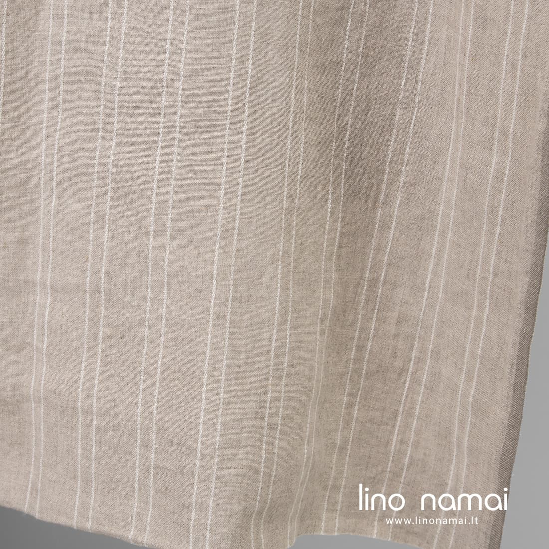 Pastaba: Audžiant šį audinį naudoti natūralios spalvos (nedažyti) lininiai verpalai, todėl Jūsų gauto audinio atspalvis gali šiek tiek skirtis nuo matomo nuotraukoje. Užsisakant pakartotinai atspalvis taip pat gali skirtis.
