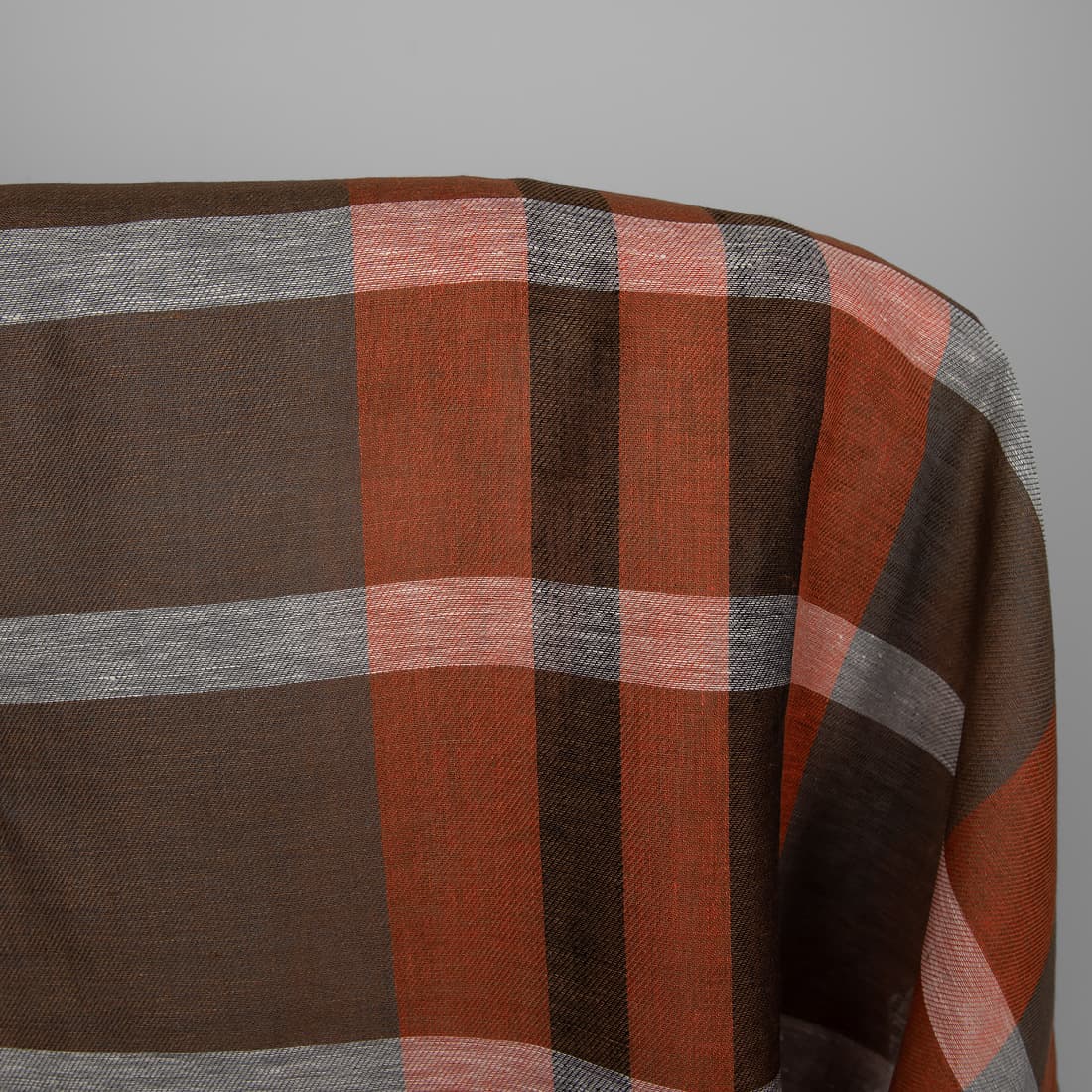 • Lininis audinys oranžinėmis rudomis juostomis