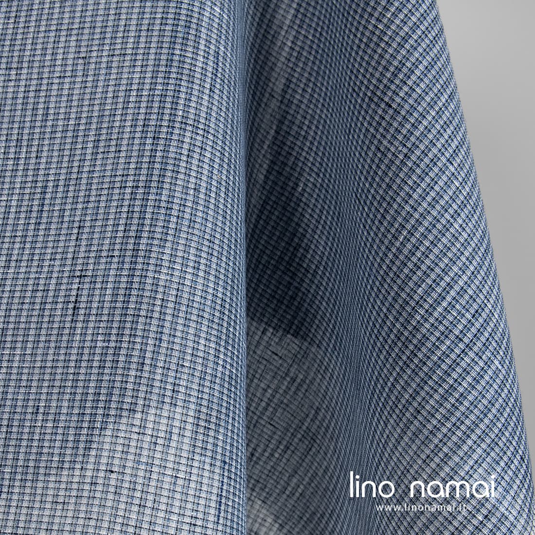 Lininis audinys permatomas mėlynais langeliais, kuriuos išaudėme iš kelių atspalvių mėlynų, pieno baltumo (gelsvai baltų), melsvai pilkų ir pilkšvų verpalų. Šis audinys retas, lengvas, todėl ypač tinka užuolaidoms, šalikams siūti.