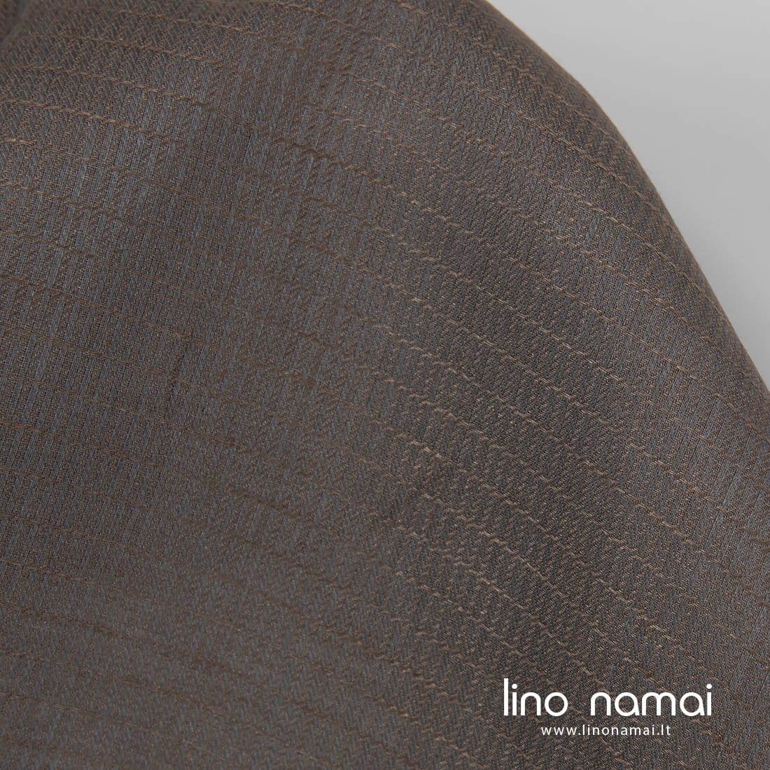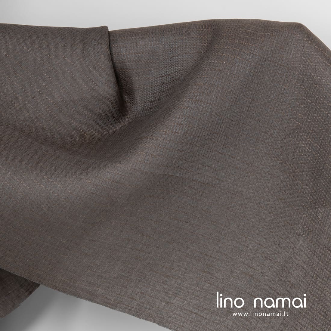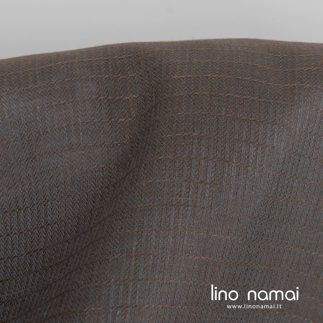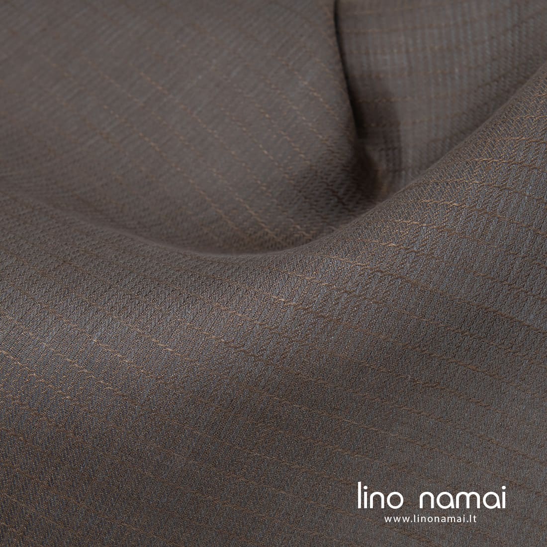 Lininis audinys pilkai-rudai raštuotas yra tvirtas, tankus, vidutinio storio. Tinka įvairiems namų tekstilės gaminiams, drabužiams siūti.