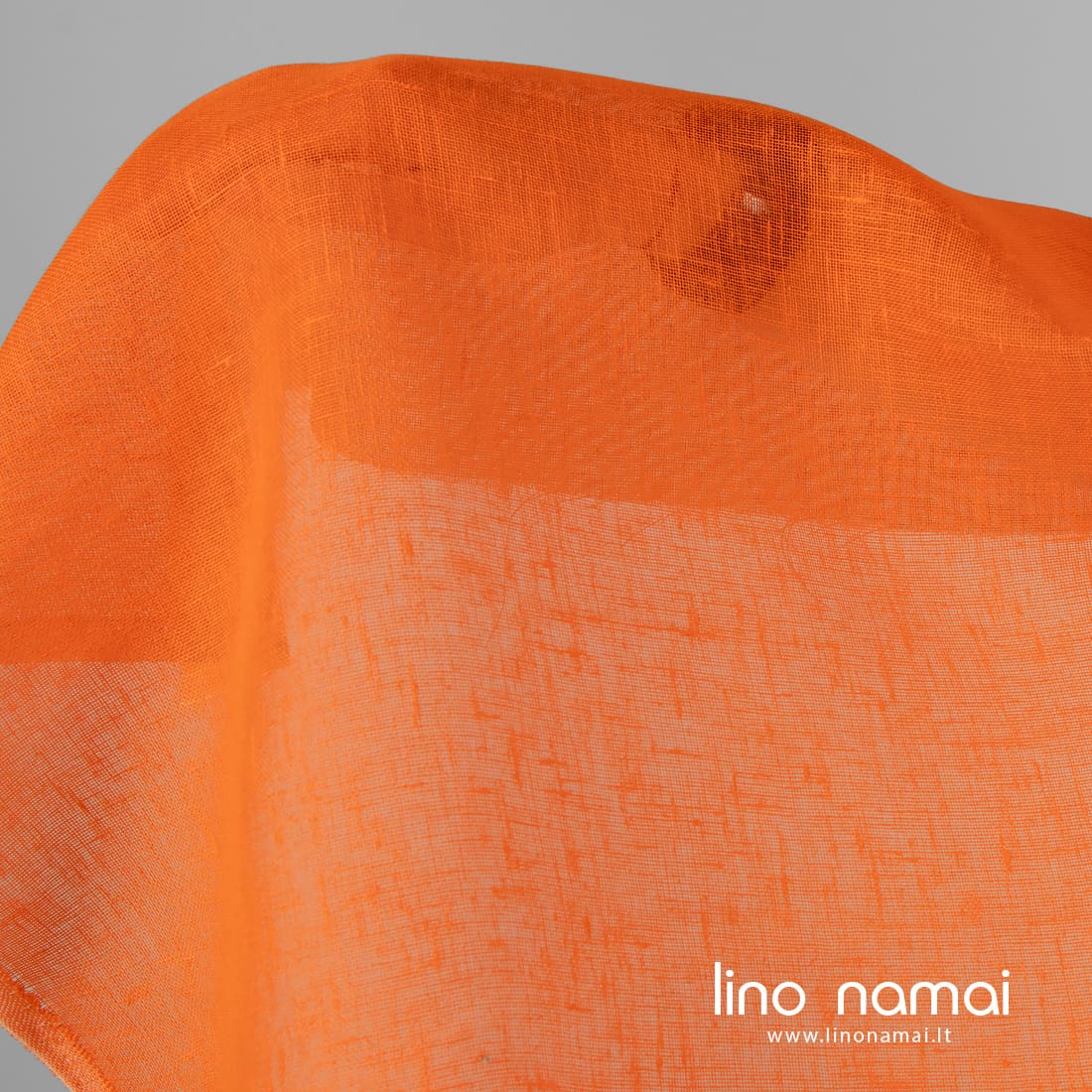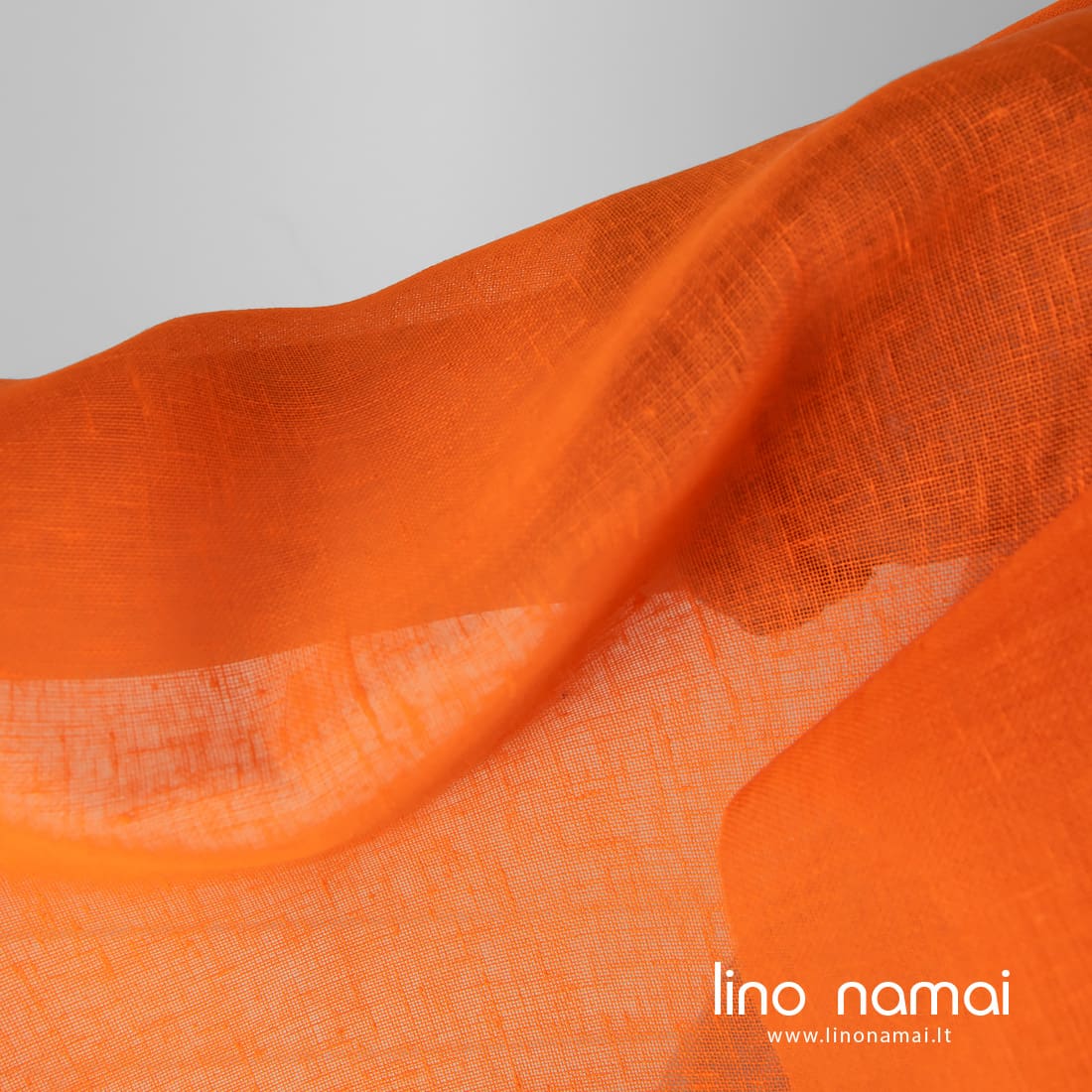 Lininis permatomas audinys ryškiai oranžinis tinka užuolaidoms, šalikams siūti, rankdarbiams daryti, nes yra lengvas, retas.