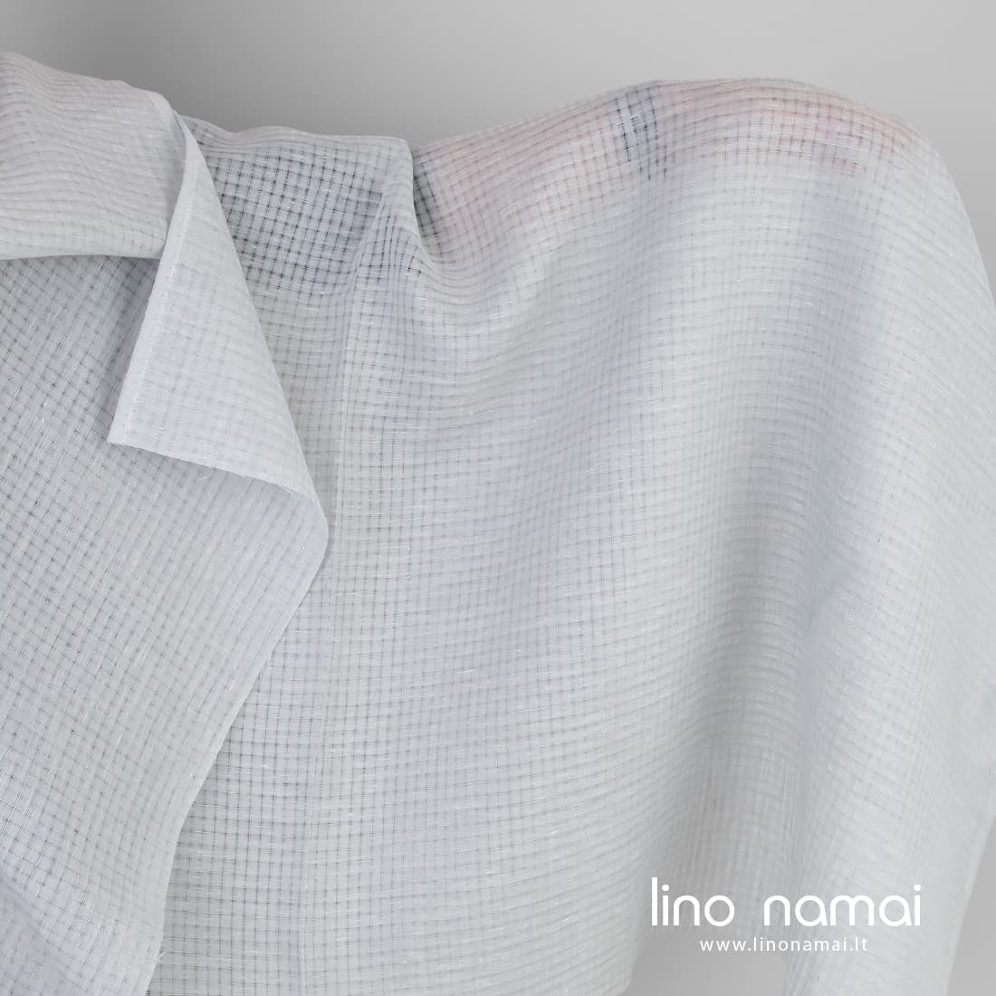 • Lininis audinys permatomais langeliais iš melsvai pilkų ir baltų verpalų
