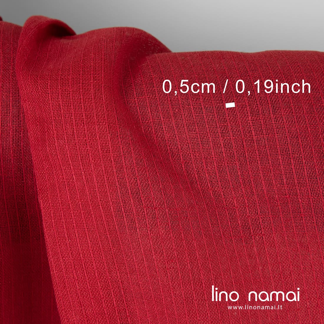 • Lengvas retas raudonas lino - medvilnės audinys vertikaliai dryžuotas