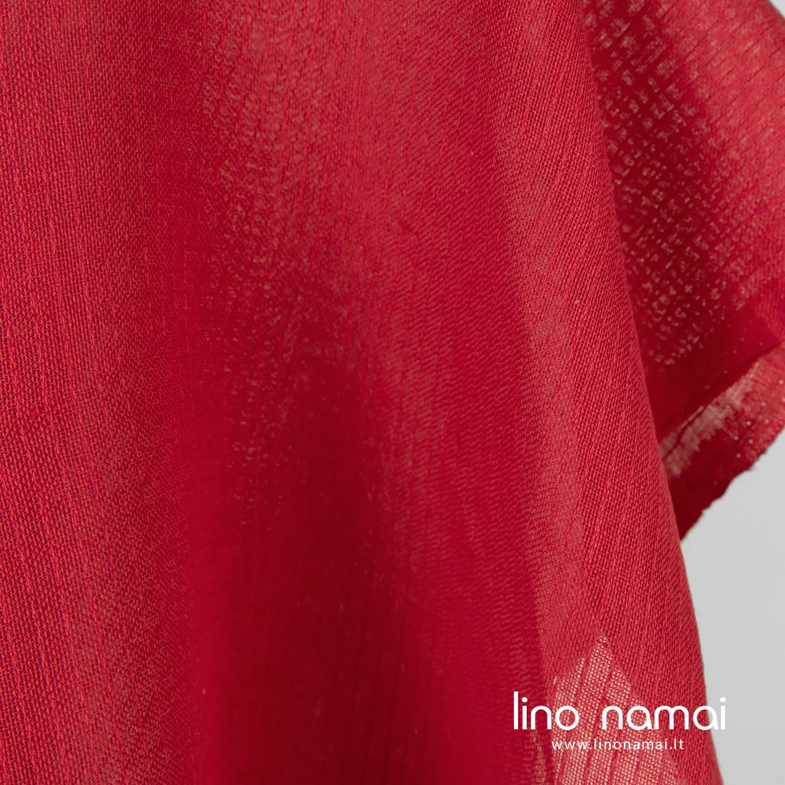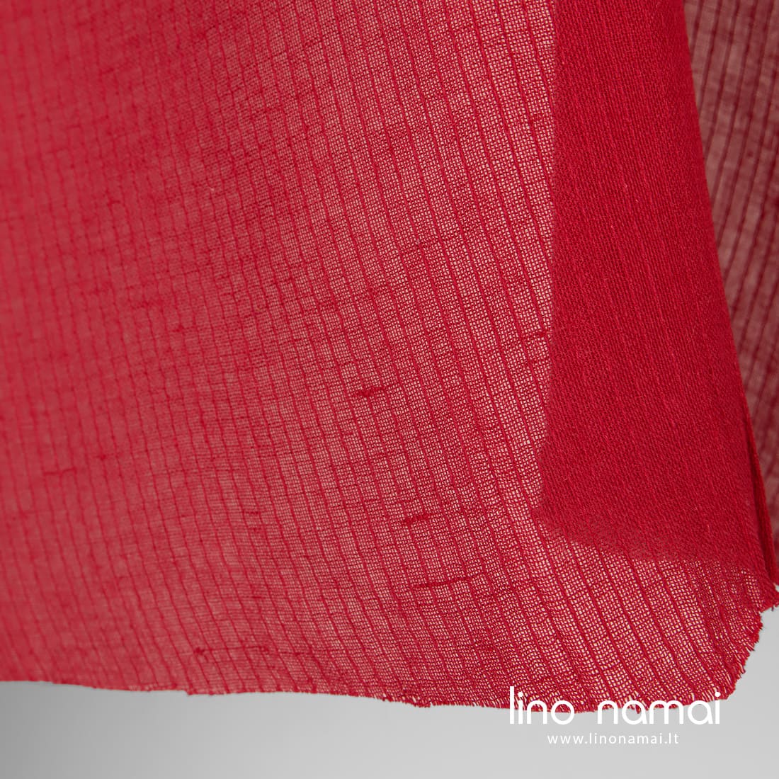 • Raudonas lino - medvilnės audinys vertikaliais dryžiais