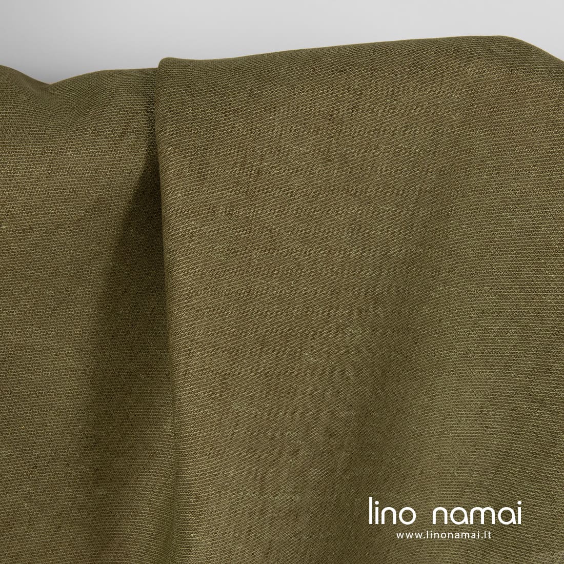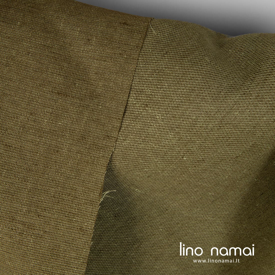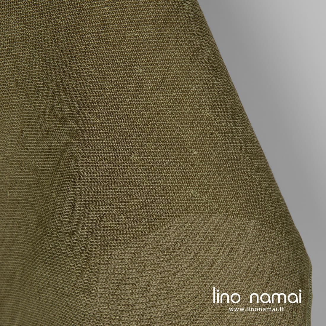 Raštuotas žalias lininis audinys išaustas smulkiu raštu iš rudai žalių (samanų spalvos) ir pilkšvai žalsvų verpalų. Tvirtas, tankus, vidutinio storio, tinka drabužiams, namų tekstilei (staltiesėms, užuolaidoms, prijuostėms) siūti.