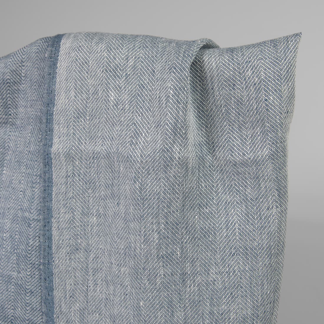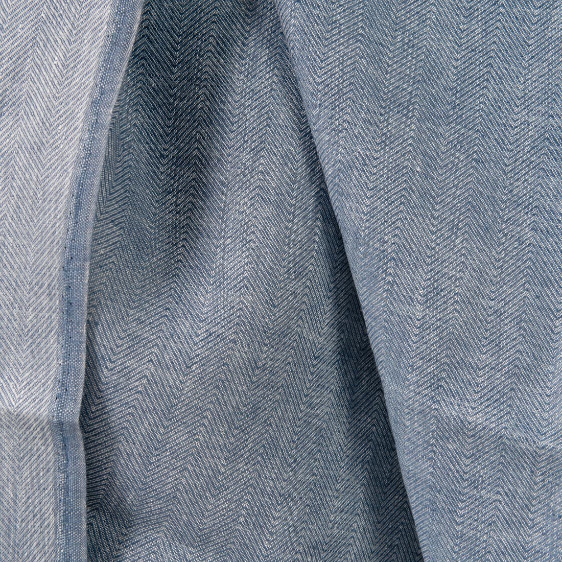 • Lininis audinys „eglutės“ raštu išaustas iš baltų ir džinso mėlynumo verpalų