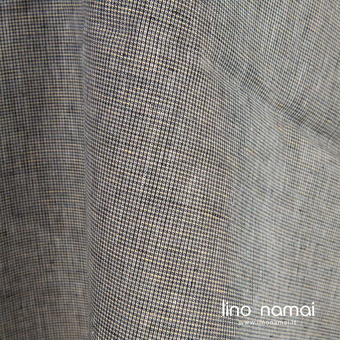 • Lininis audinys geltonai juodas melanžinis skirtas drabužiams ir namų tekstilės gaminiams siūti