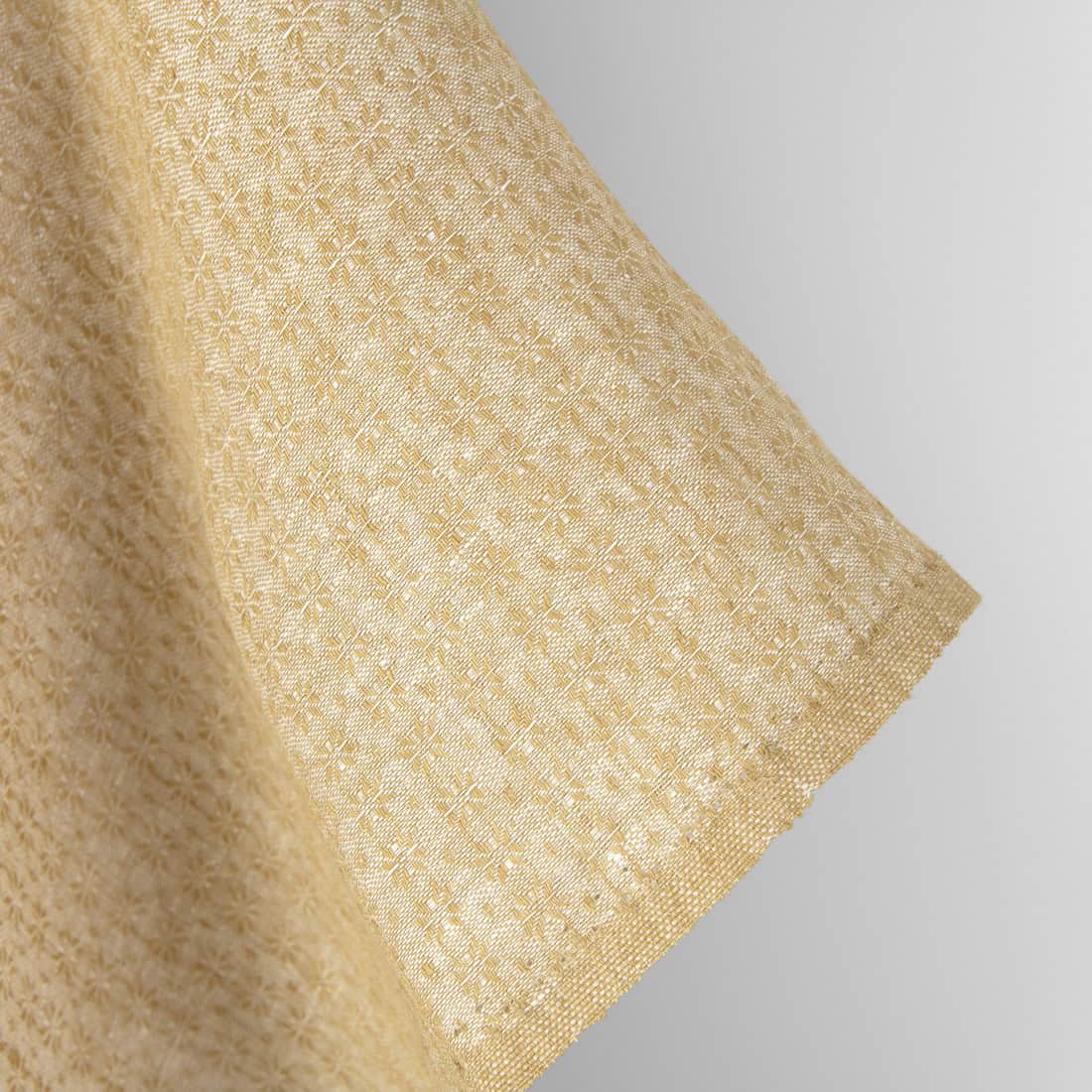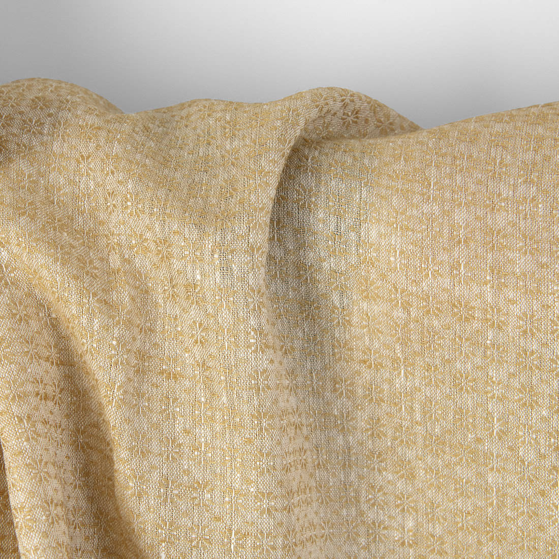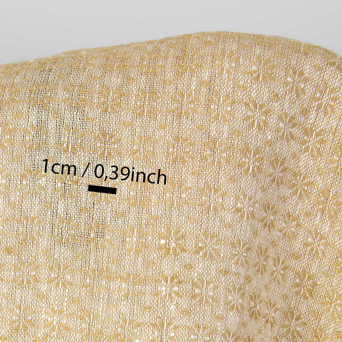 • Lininis audinys gėlyčių raštu išaustas iš baltų ir imbiero geltonumo verpalų