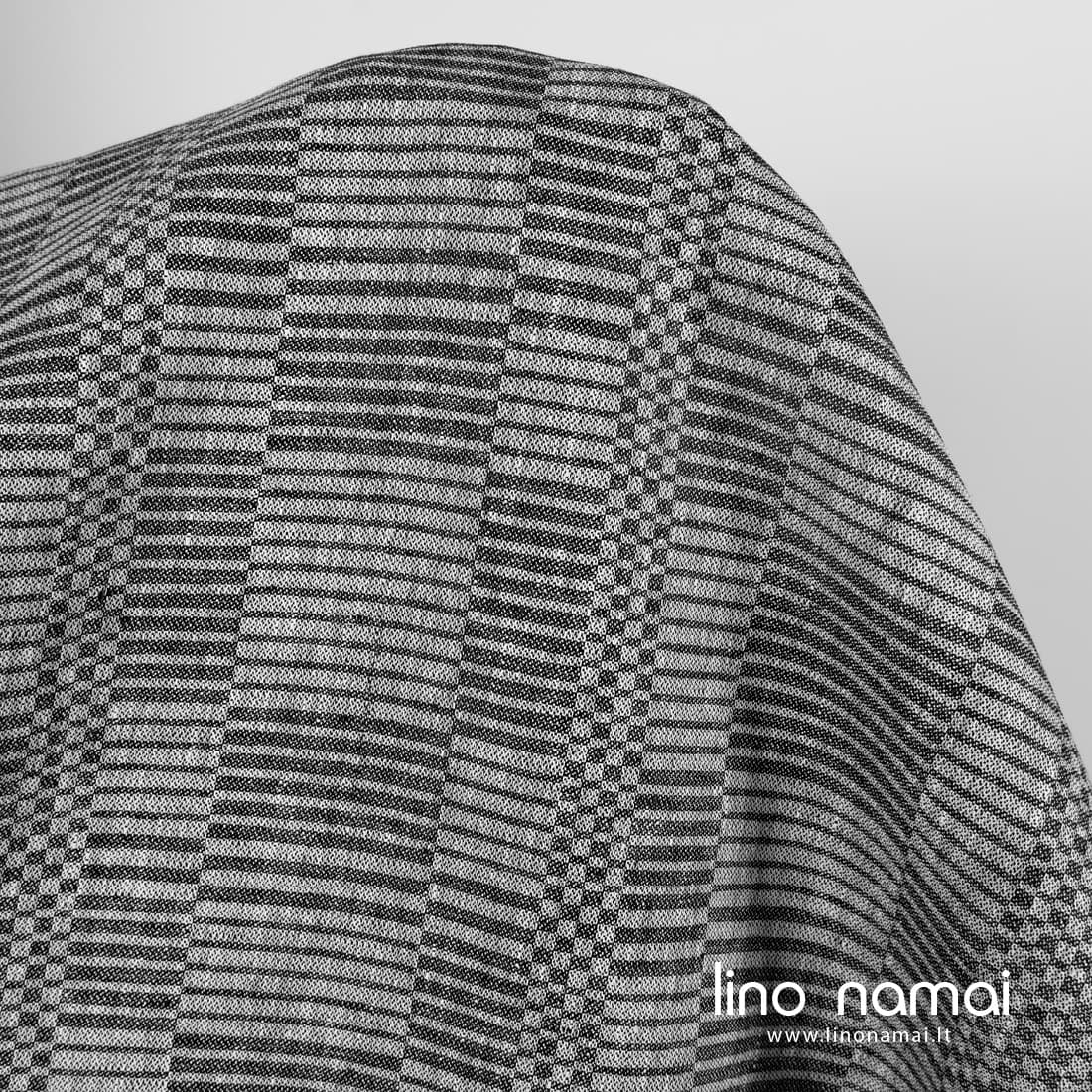Lininis audinys juodai-baltai raštuotas