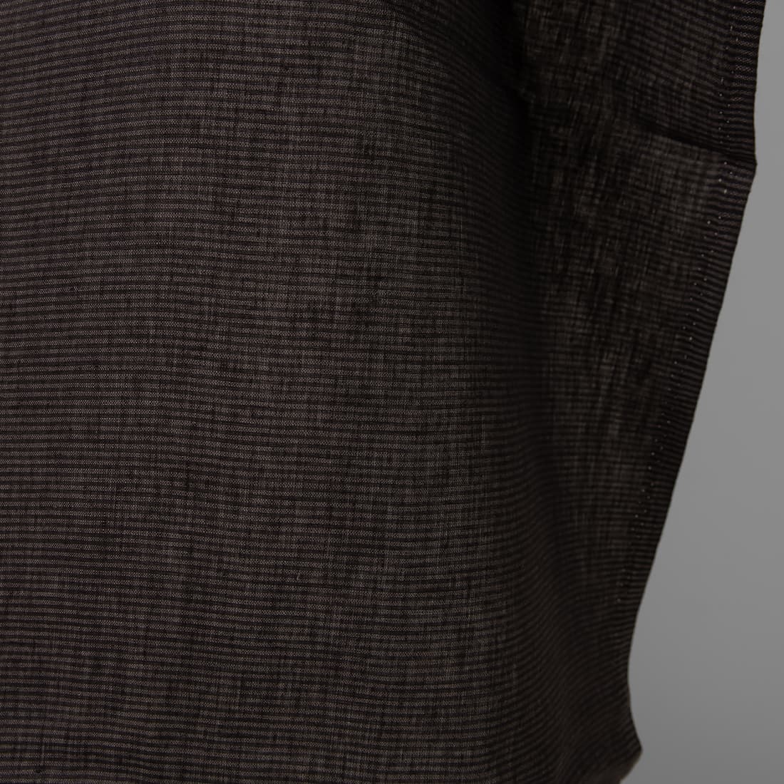 • Lininis audinys horizontaliais siaurais juodais ir rusvai pilkais (antracito spalvos) dryžiukais