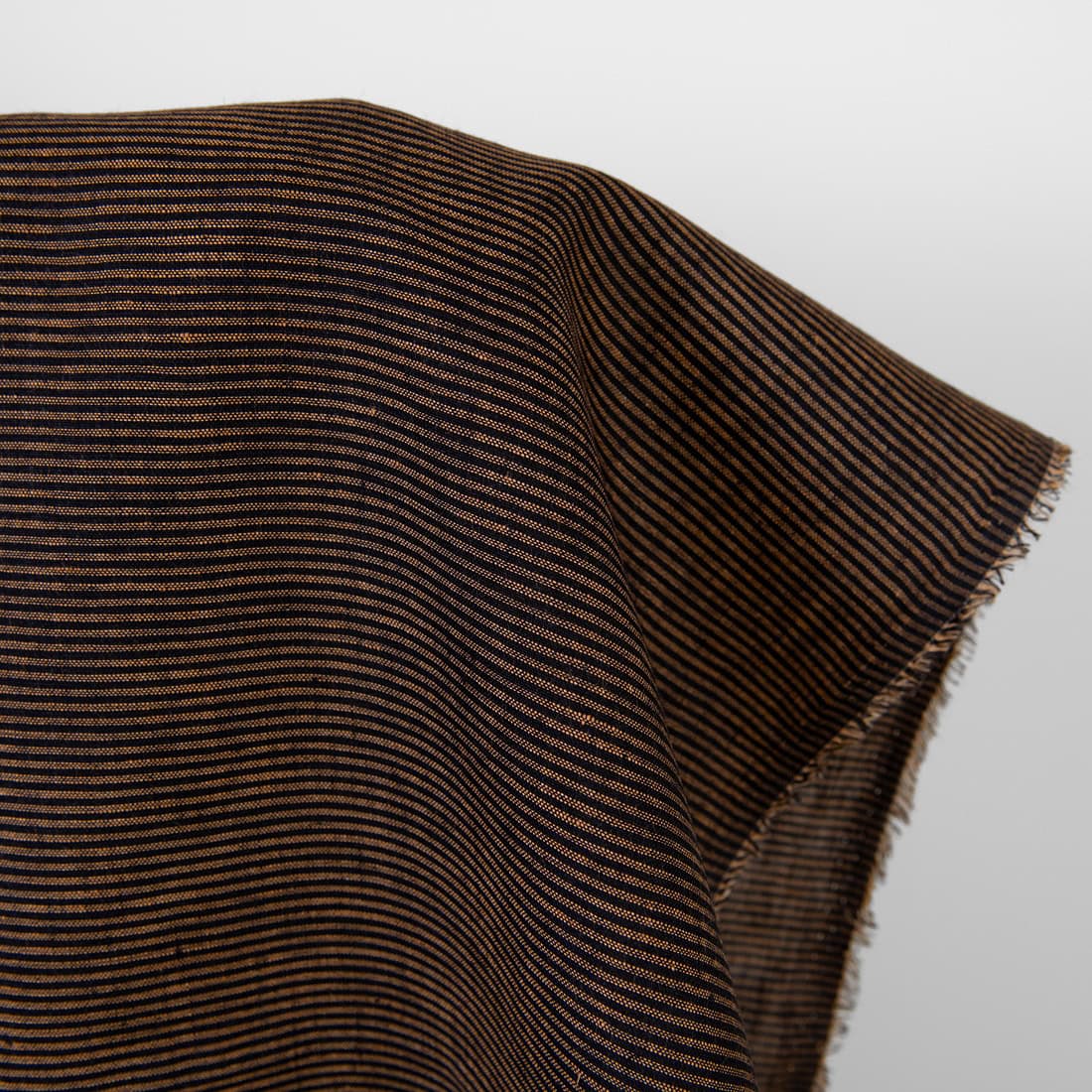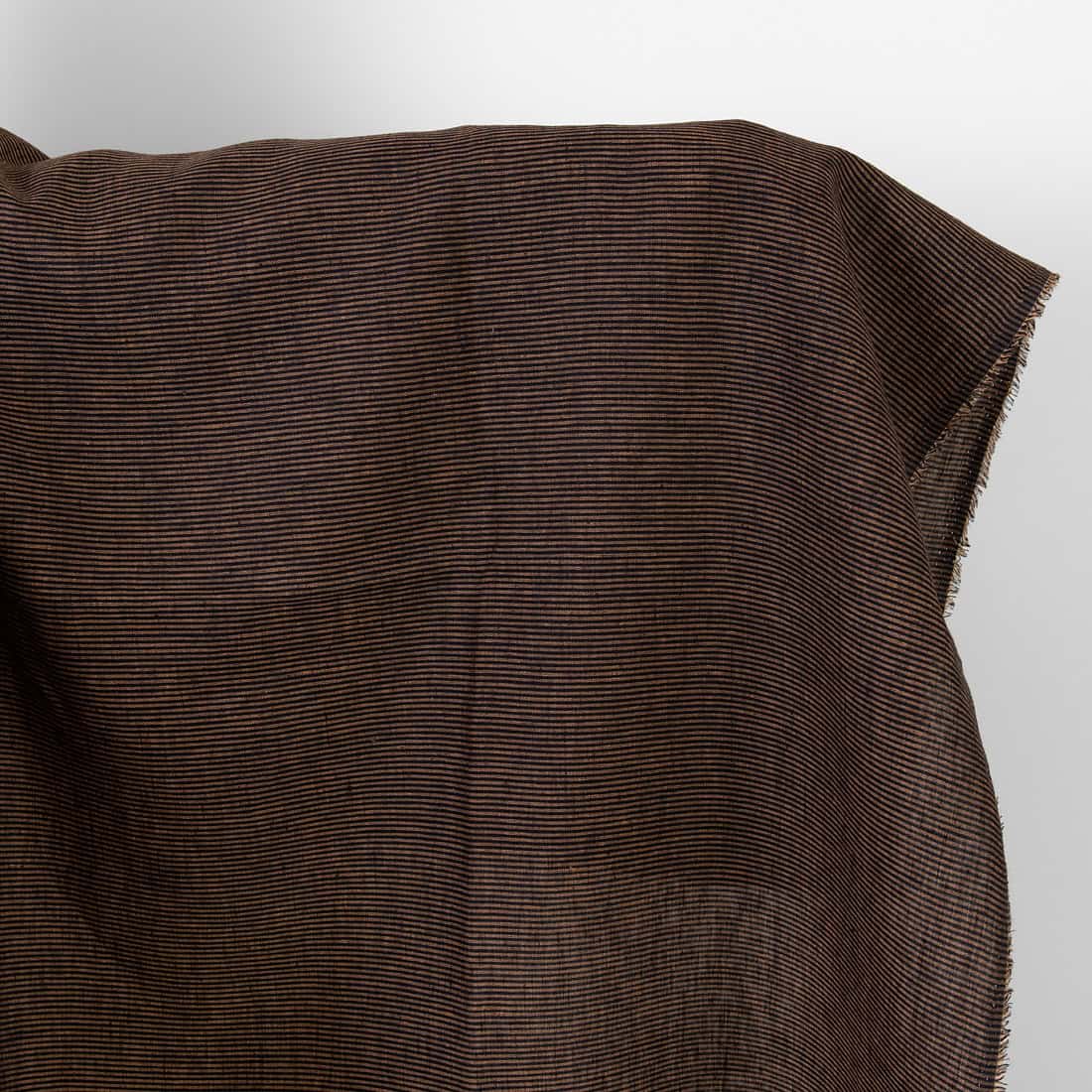 • Lininis audinys juodais ir rudais horizontaliais dryžiukais