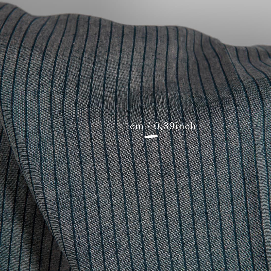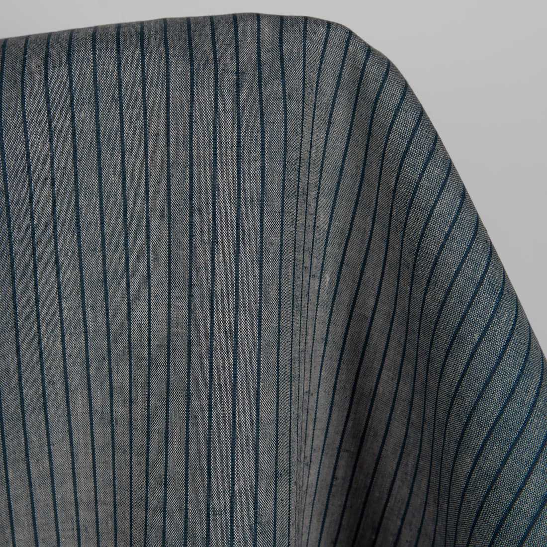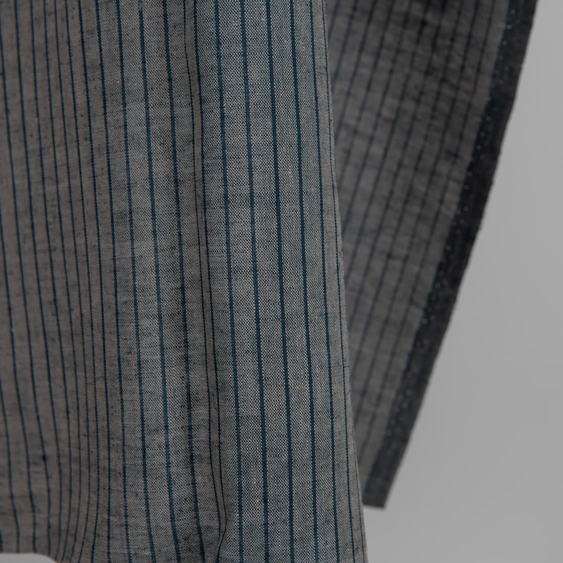 • Lininis audinys melanžinis su vertikaliais mėlynai juodais dryžiais