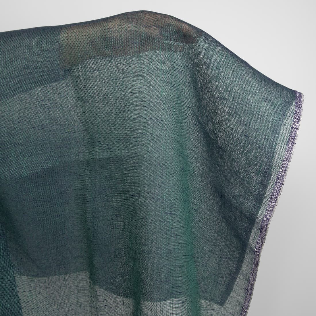 • Lengvas retas permatomas 100% lino audinys iš tamsiai žalių ir tamsiai mėlynų verpalų