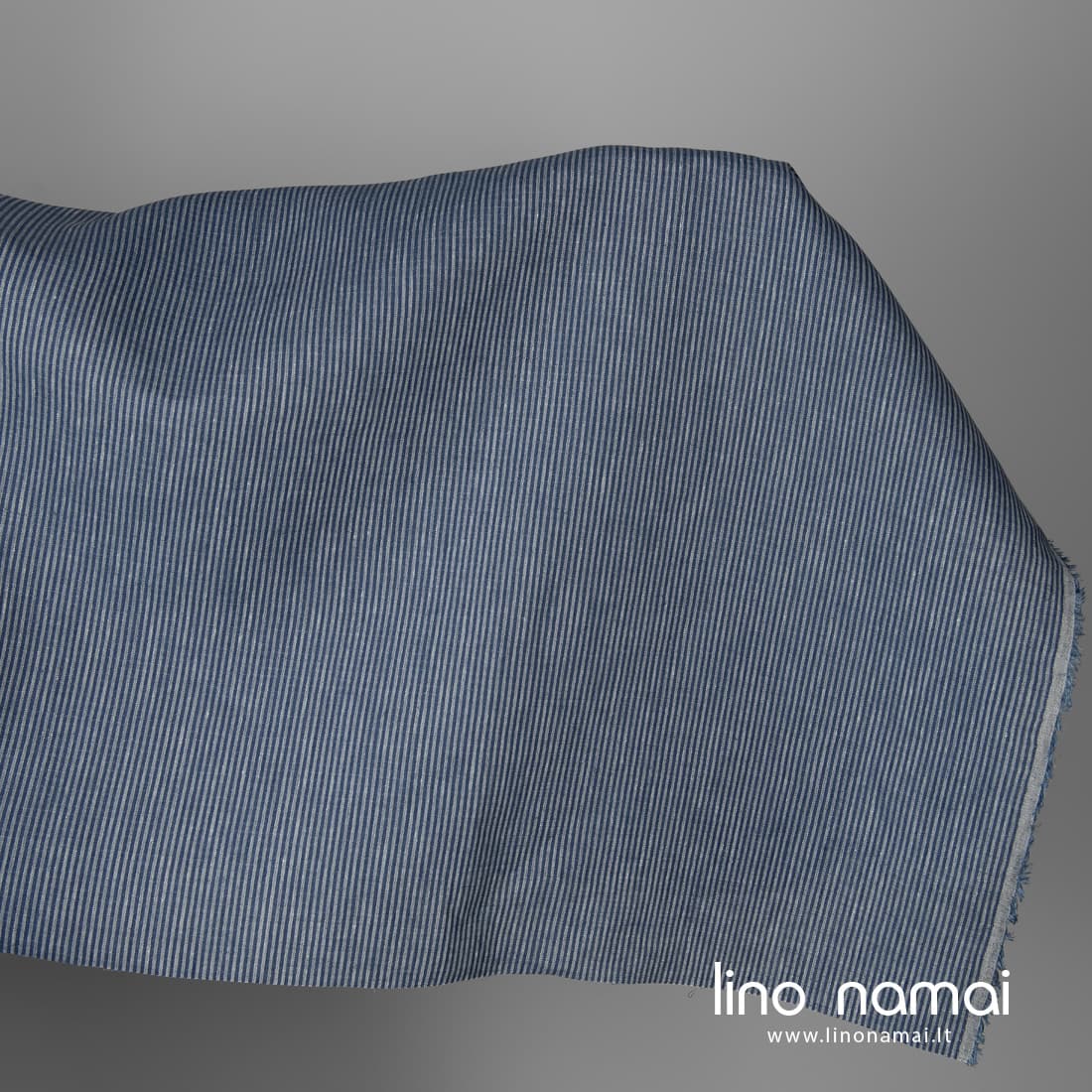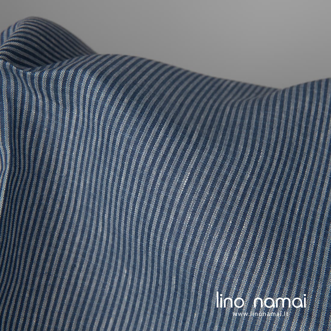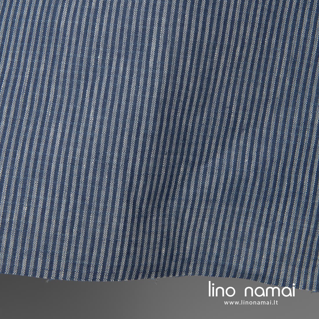 • Lininis audinys vertikaliais siaurais dryžiais, išaustais iš mėlynų, tamsiai mėlynų ir baltų verpalų