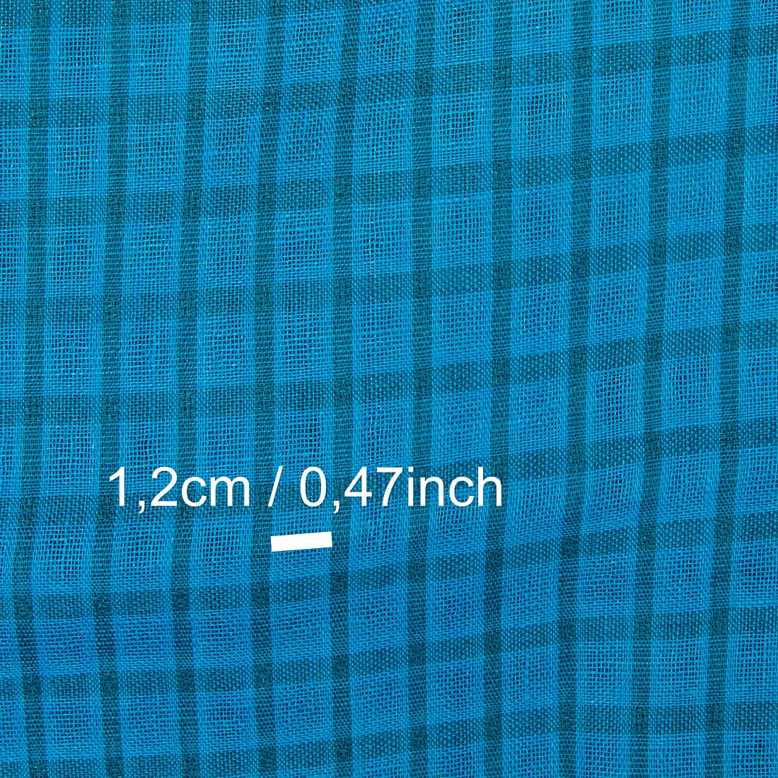 • Lininis audinys mėlynas permatomais langeliais tinka drabužiams ir namų tekstilės gaminiams siūti