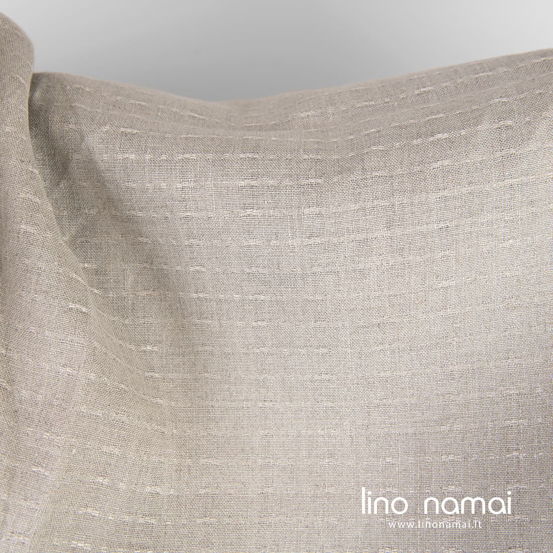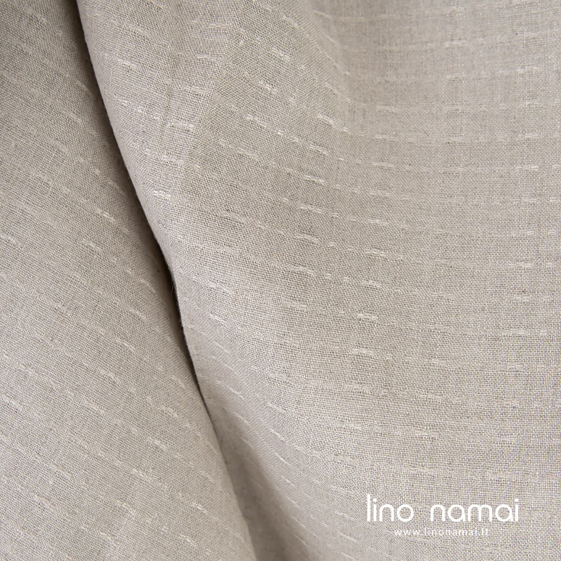 Pastaba: Audžiant šį audinį naudoti natūralios spalvos (nedažyti) lininiai verpalai, todėl Jūsų gauto audinio atspalvis gali šiek tiek skirtis nuo matomo nuotraukoje. Užsisakant pakartotinai atspalvis taip pat gali skirtis.