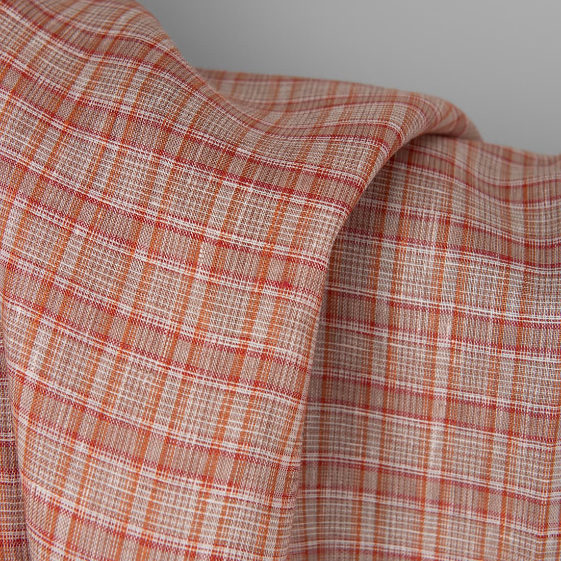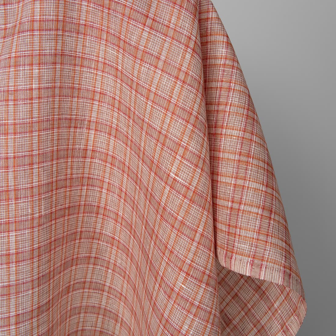 • Lininis audinys oranžiniais langeliais