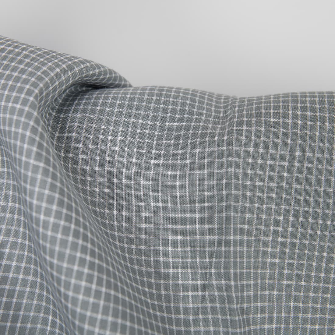 • Lininis audinys languotas, kuriame suausti mėlynai pilki ir ryškiai balti verpalai