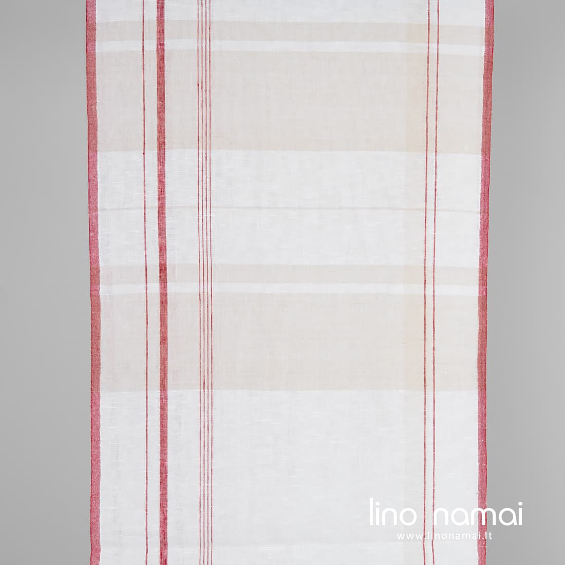 Pastaba: Audžiant šį audinį naudoti natūralios spalvos (nedažyti) lininiai verpalai, todėl Jūsų gauto audinio atspalvis gali šiek tiek skirtis nuo matomo nuotraukoje. Užsisakant pakartotinai atspalvis taip pat gali skirtis.