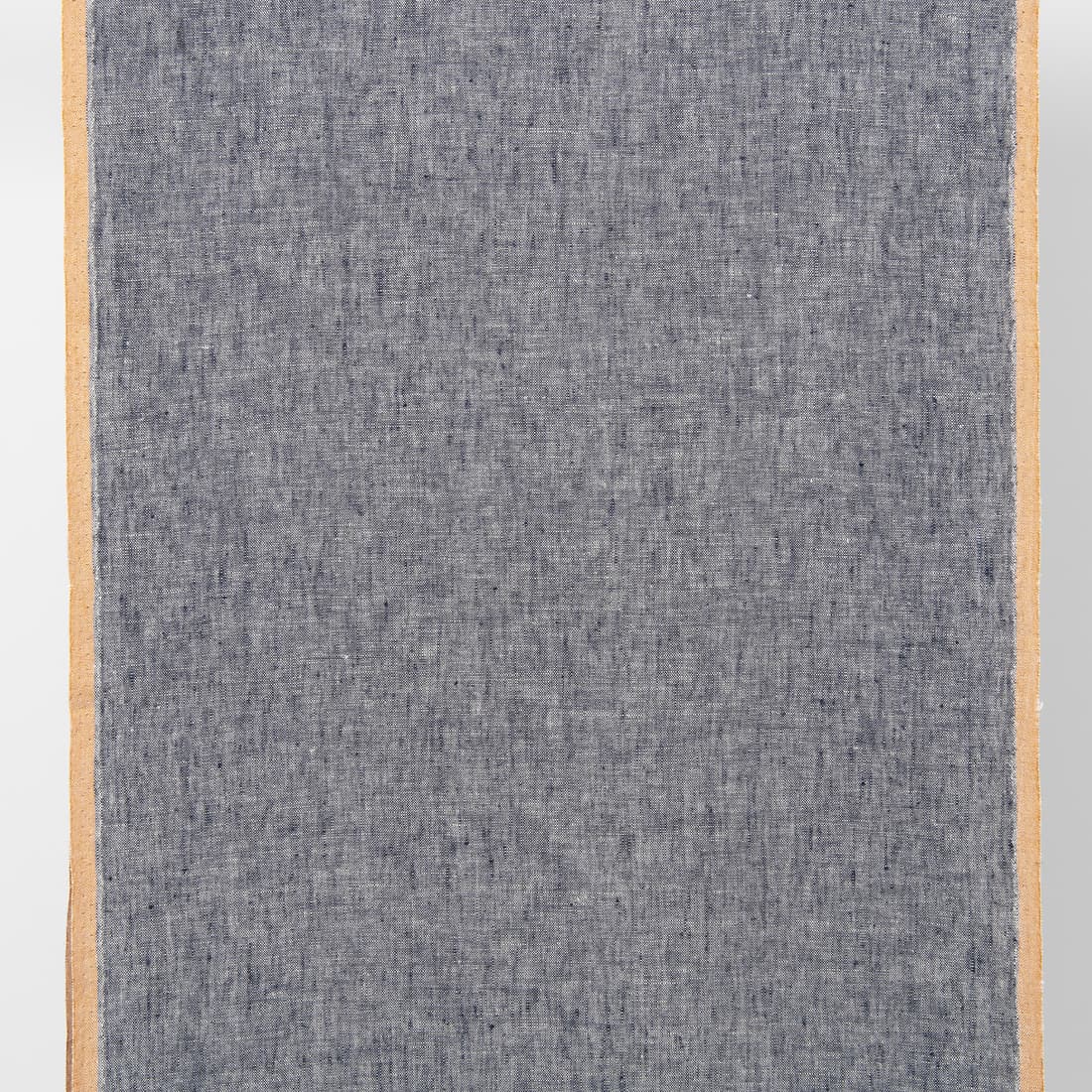 • Lininis audinys rankšluostinis tamsiai mėlynas-pilkšvas melanžinis garstyčių geltonumo krašteliu, 50cm pločio