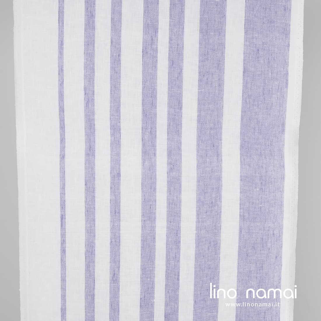 • Lininis audinys violetinėmis ir baltomis juostomis virtuvės rankšluosčiams siūti