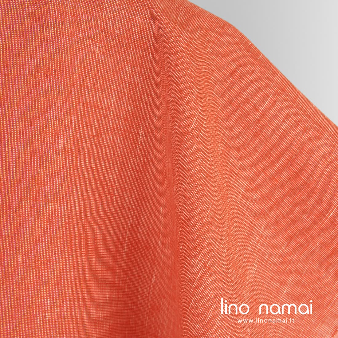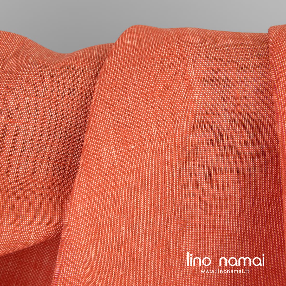 • Lininis audinys raudonai gelsvas melanžinis tinka drabužiams ir namų tekstilei siūti