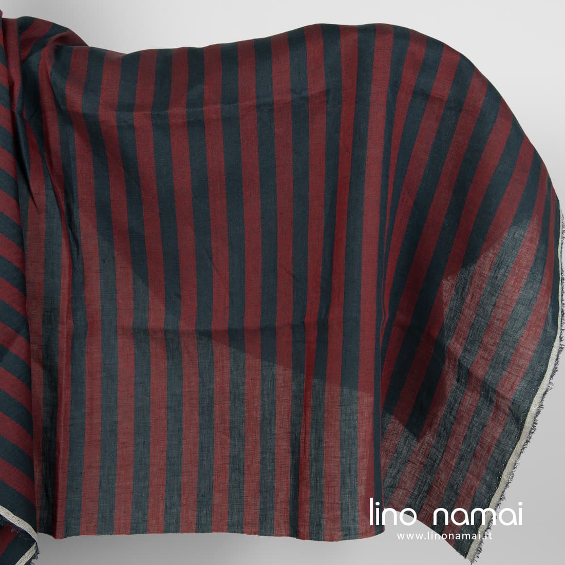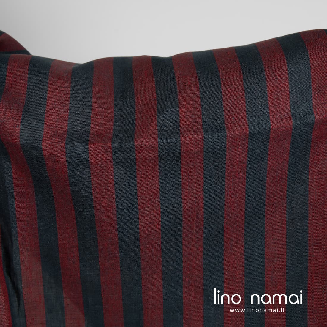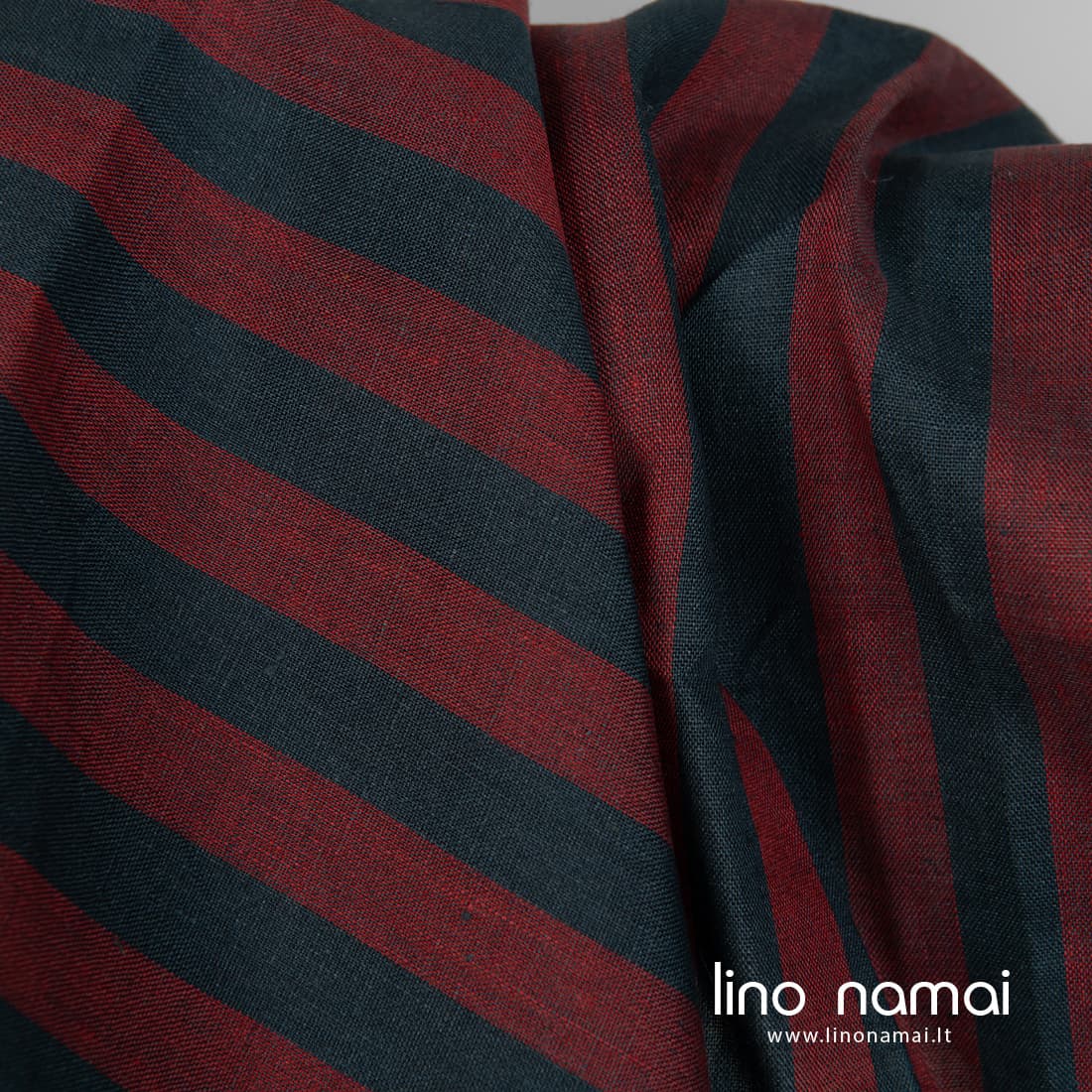 • Lininis audinys dryžuotas išaustas iš tamsiai raudonų ir tamsiai mėlynų verpalų