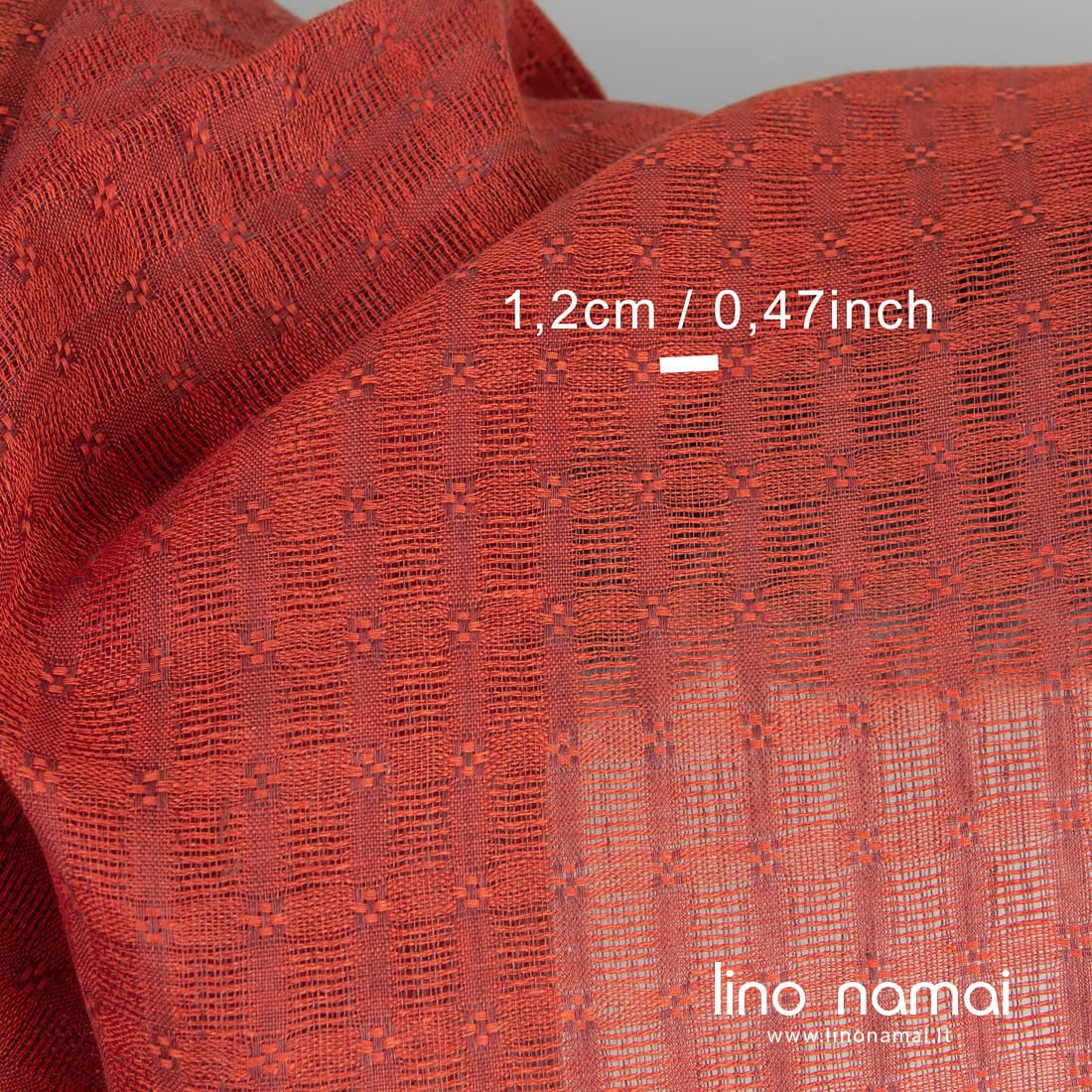 • Lininis audinys raudonas ažūriniais langeliais skaroms, šalikams, užuolaidoms, staltiesėms siūti