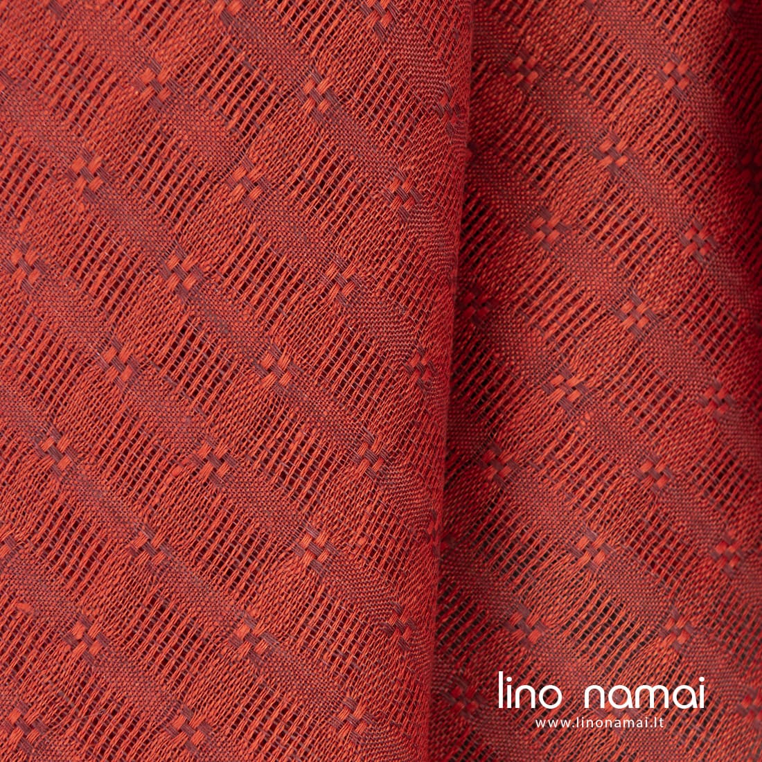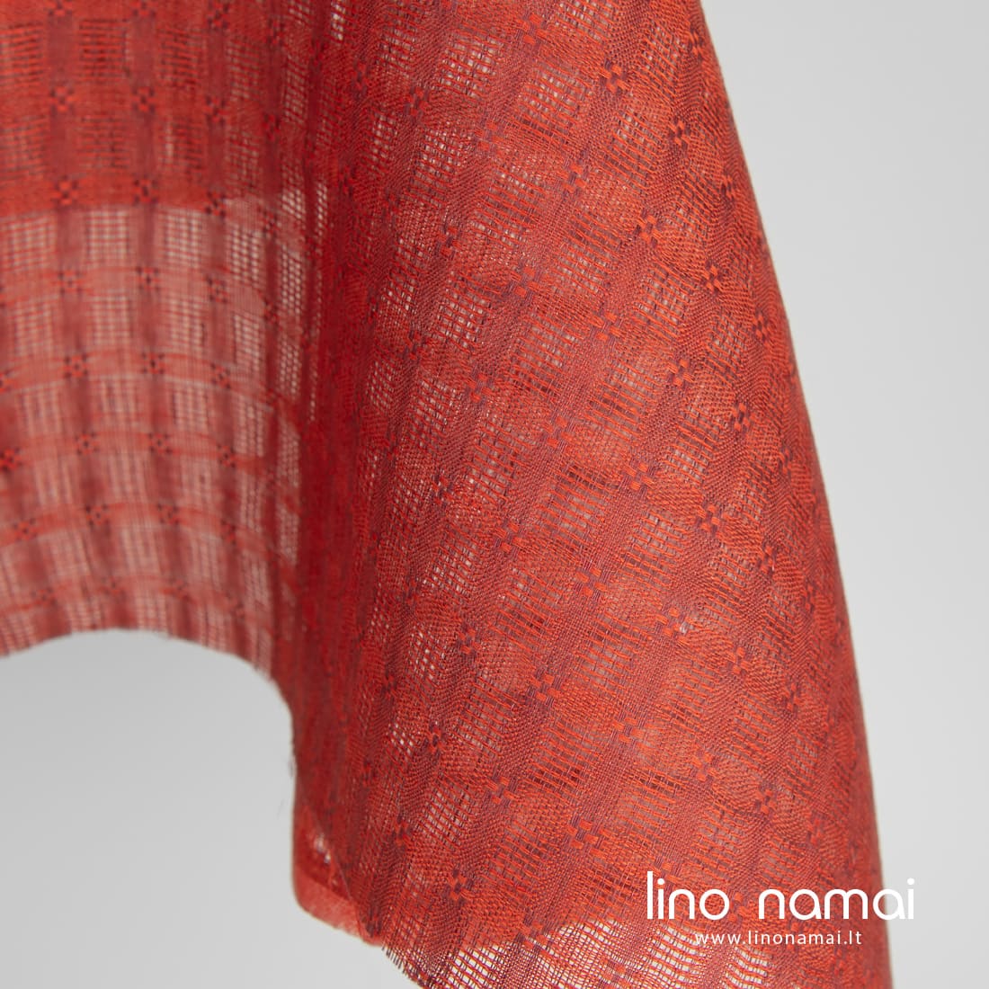 • Lino audinys permatomais langeliais išaustas iš raudonai rudų ir raudonų verpalų