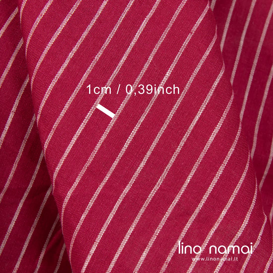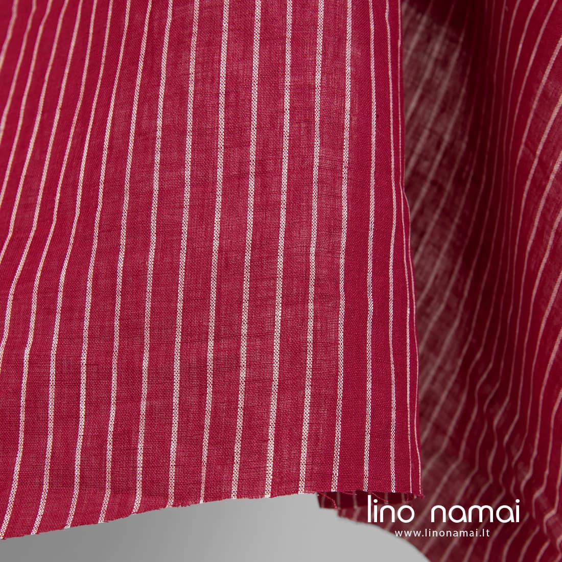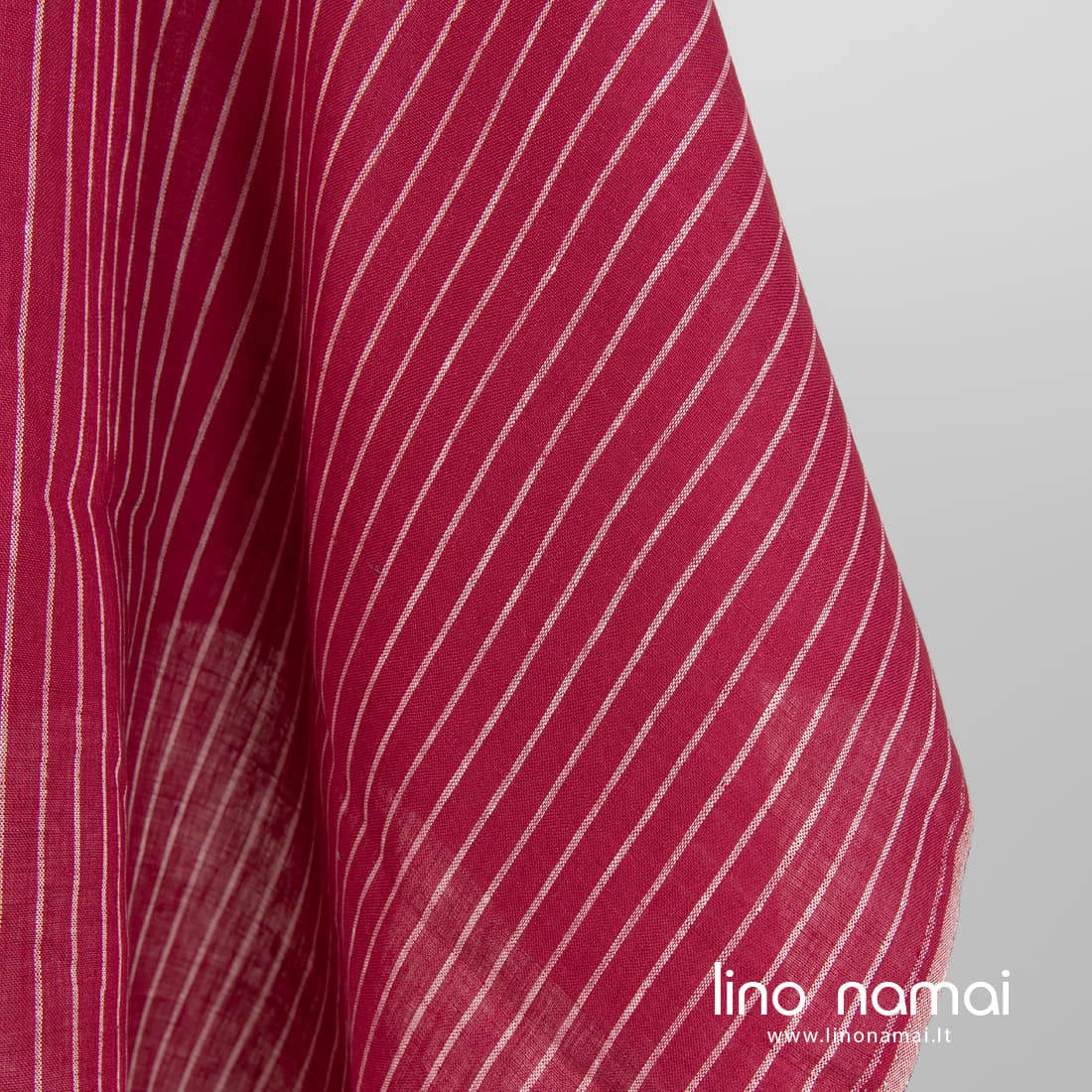 • Lininis lengvas raudonas audinys baltais dryžiukais