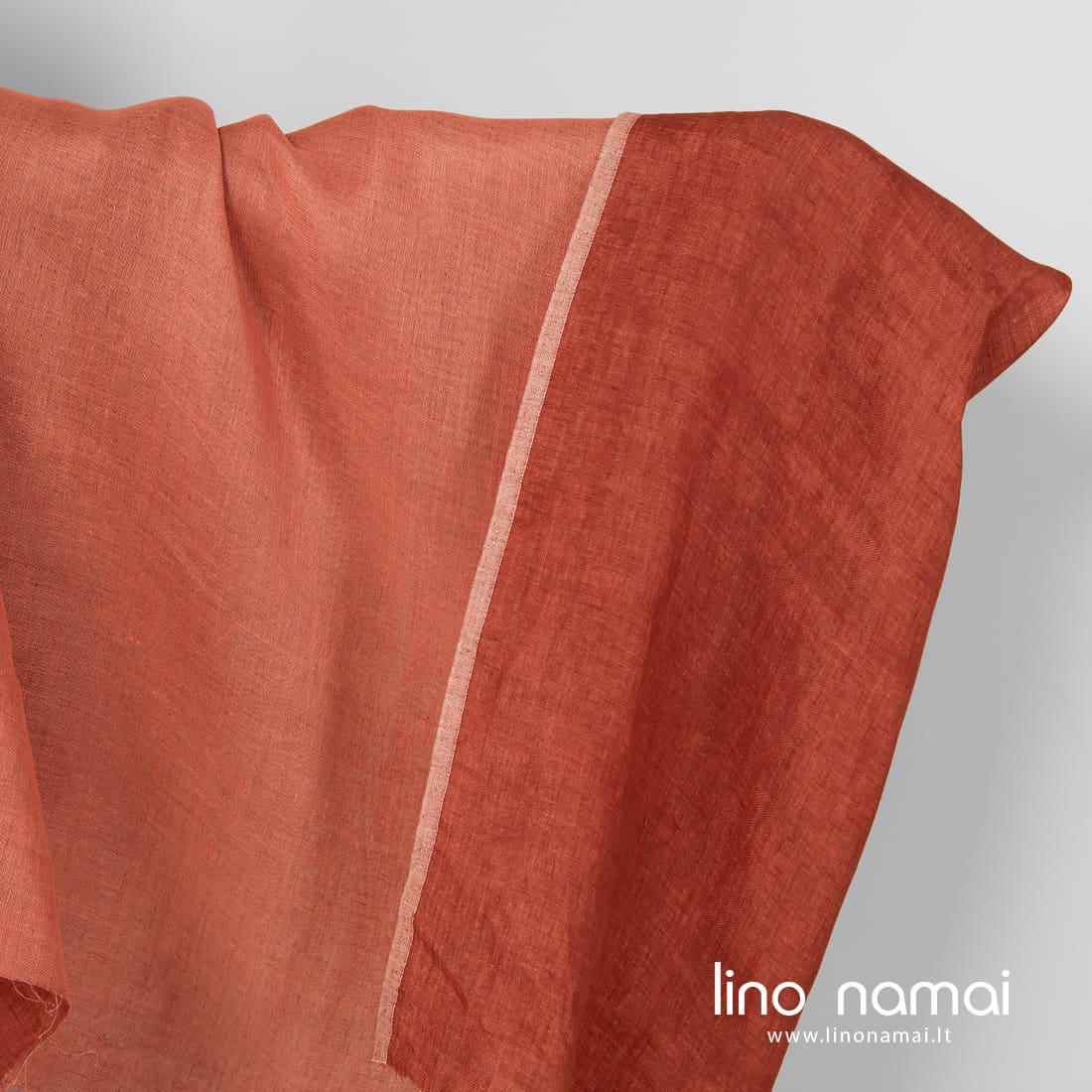 Lininis audinys raudonas dvipusis, dvisluoksnis: viena pusė tamsiai raudona, kita iš ryškiai rožinių verpalų. Tvirtas, tankus, vidutinio storio.