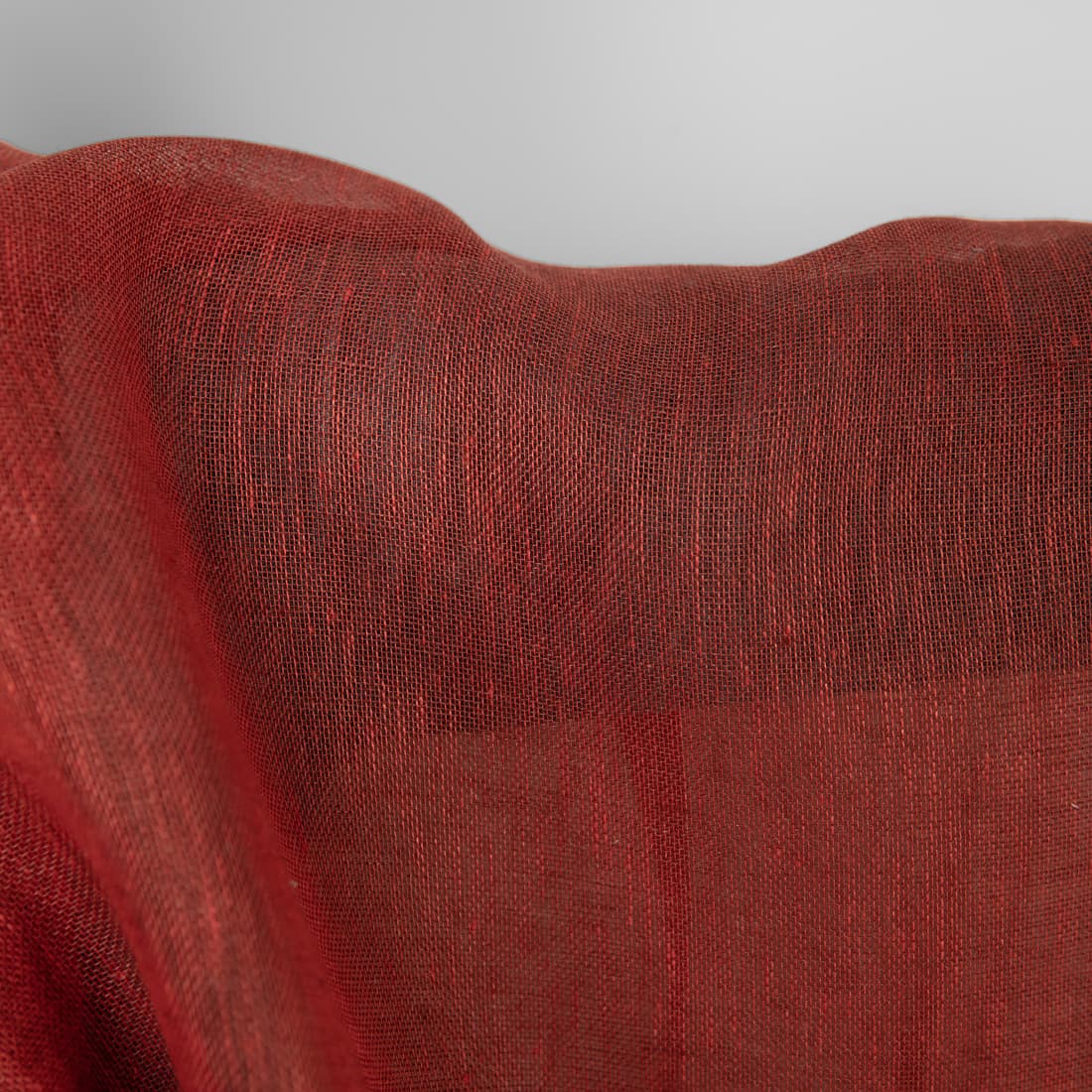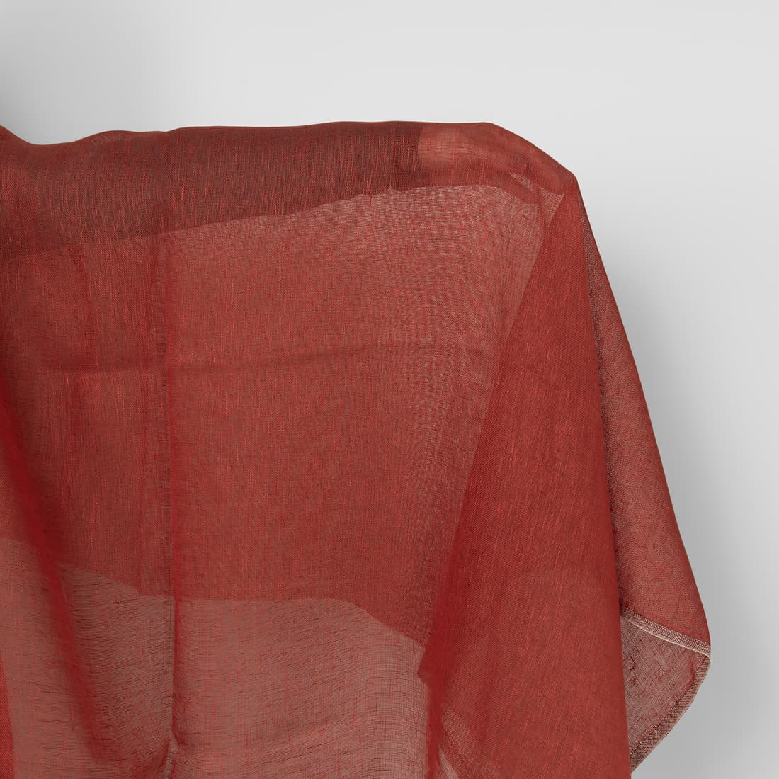 Lininis audinys rudai raudonas permatomas