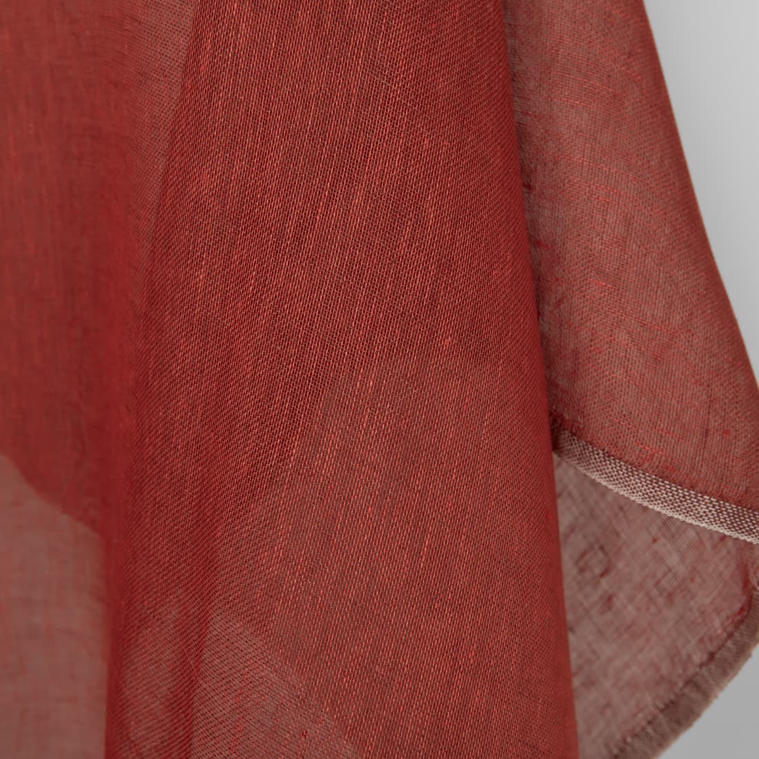 • Lininis audinys rudai raudonas permatomas