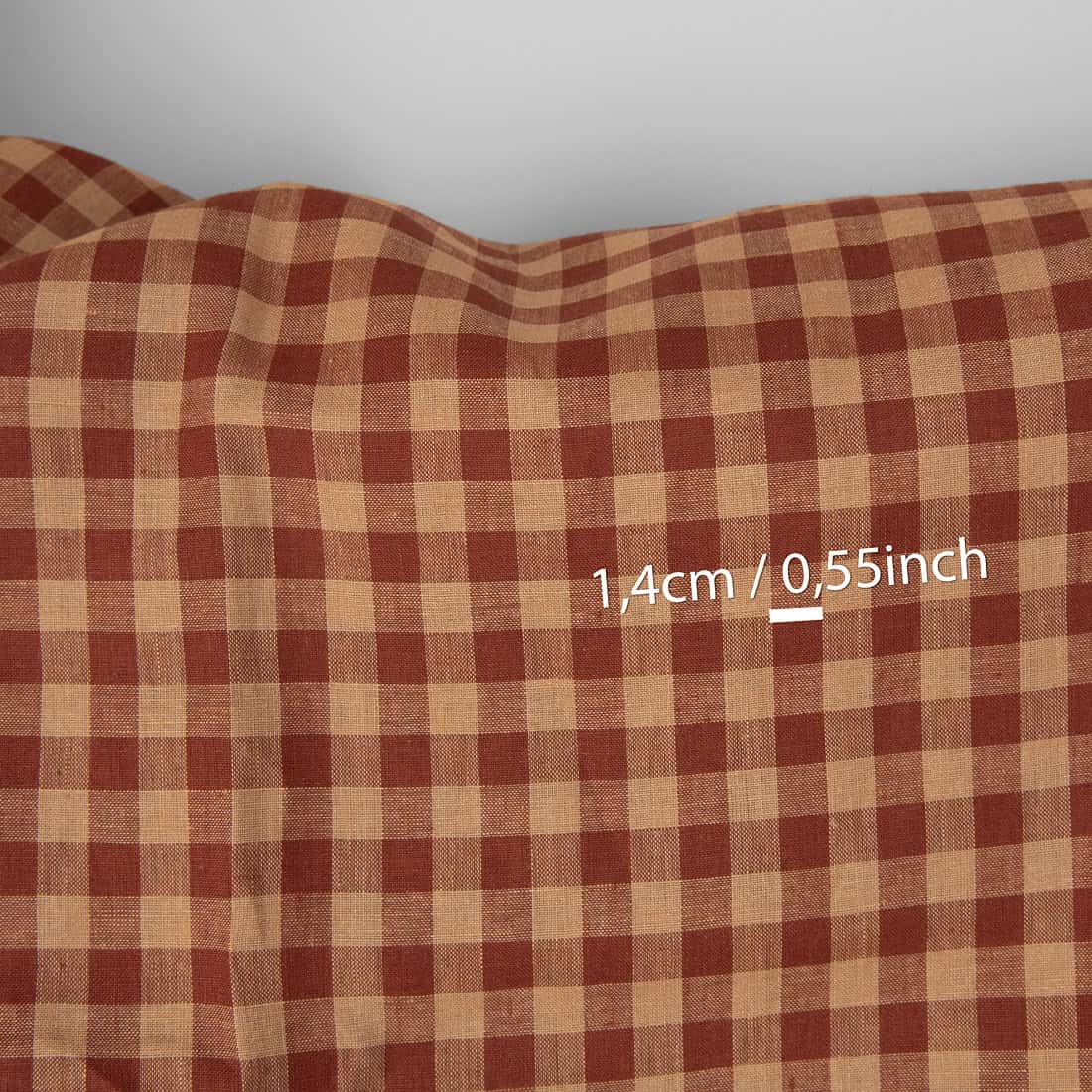 • Lininis audinys rudais ir raudonais langeliais
