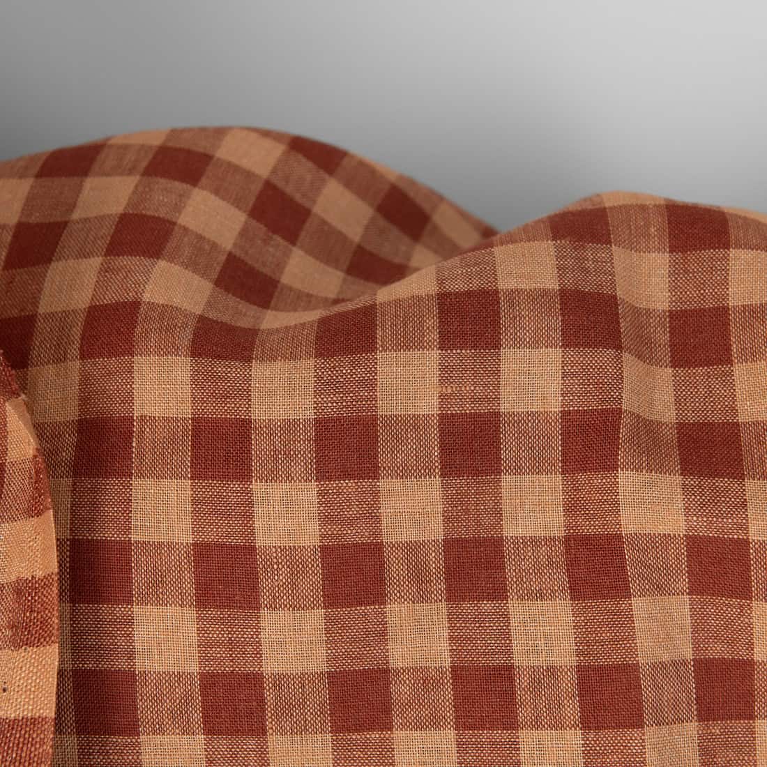• Lininis audinys rudais ir raudonais langeliais tinka drabužiams ir namų tekstilės gaminiams siūti