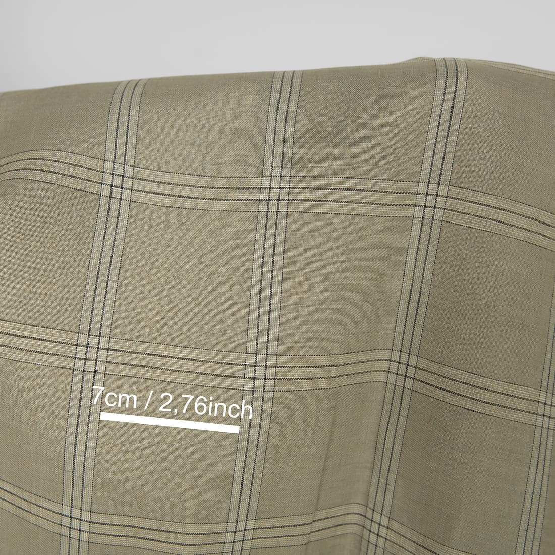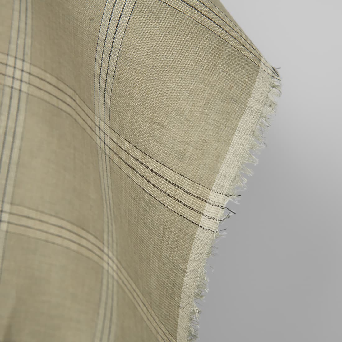 • Lininis audinys rusvai-pilkai languotas