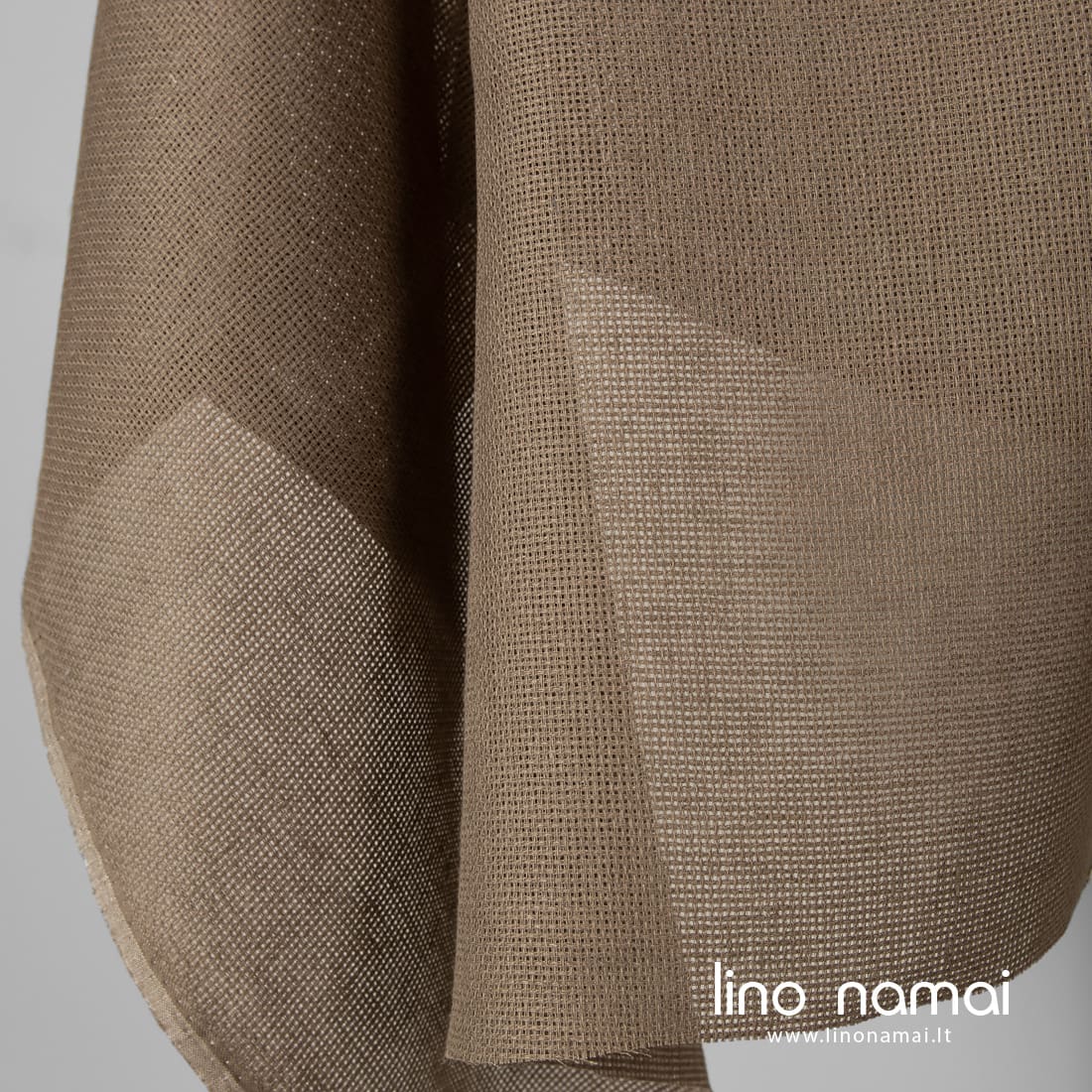 Lininis audinys rusvas ažūrinis yra tvirtas, reto pynimo, permatomas. Puikiai tinka rankdarbiams daryti, siuvinėti kryželiu.