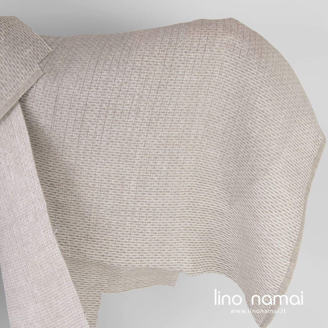Pastaba: Audžiant šį audinį naudoti natūralios spalvos (nedažyti) lininiai verpalai, todėl Jūsų gauto audinio atspalvis gali šiek tiek skirtis nuo matomo nuotraukoje. Užsisakant pakartotinai atspalvis taip pat gali skirtis.